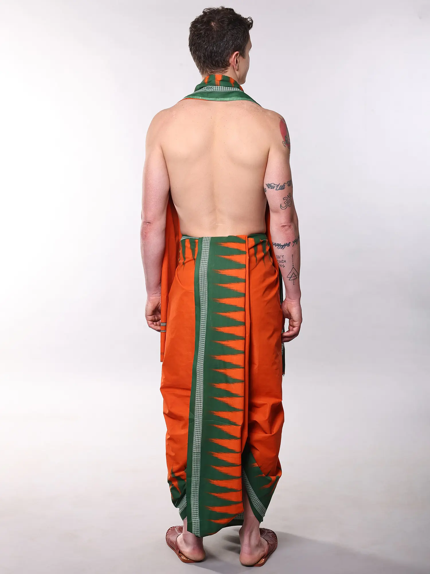 Cotton Dhoti with Angavastram Set and Printed Temple Border