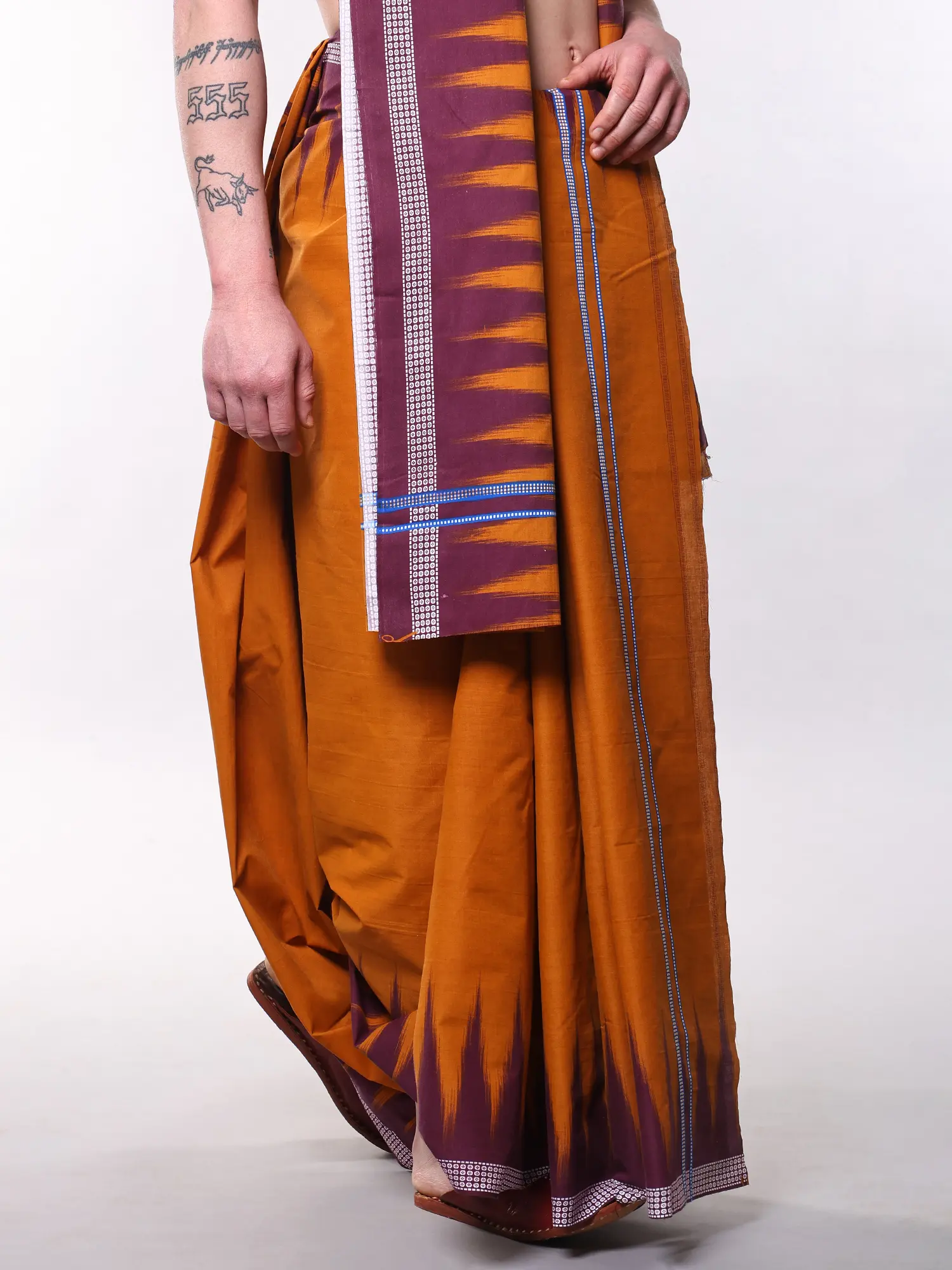Men's Traditional White Cotton Dhoti and Angavastram with Copper Paisley Border
