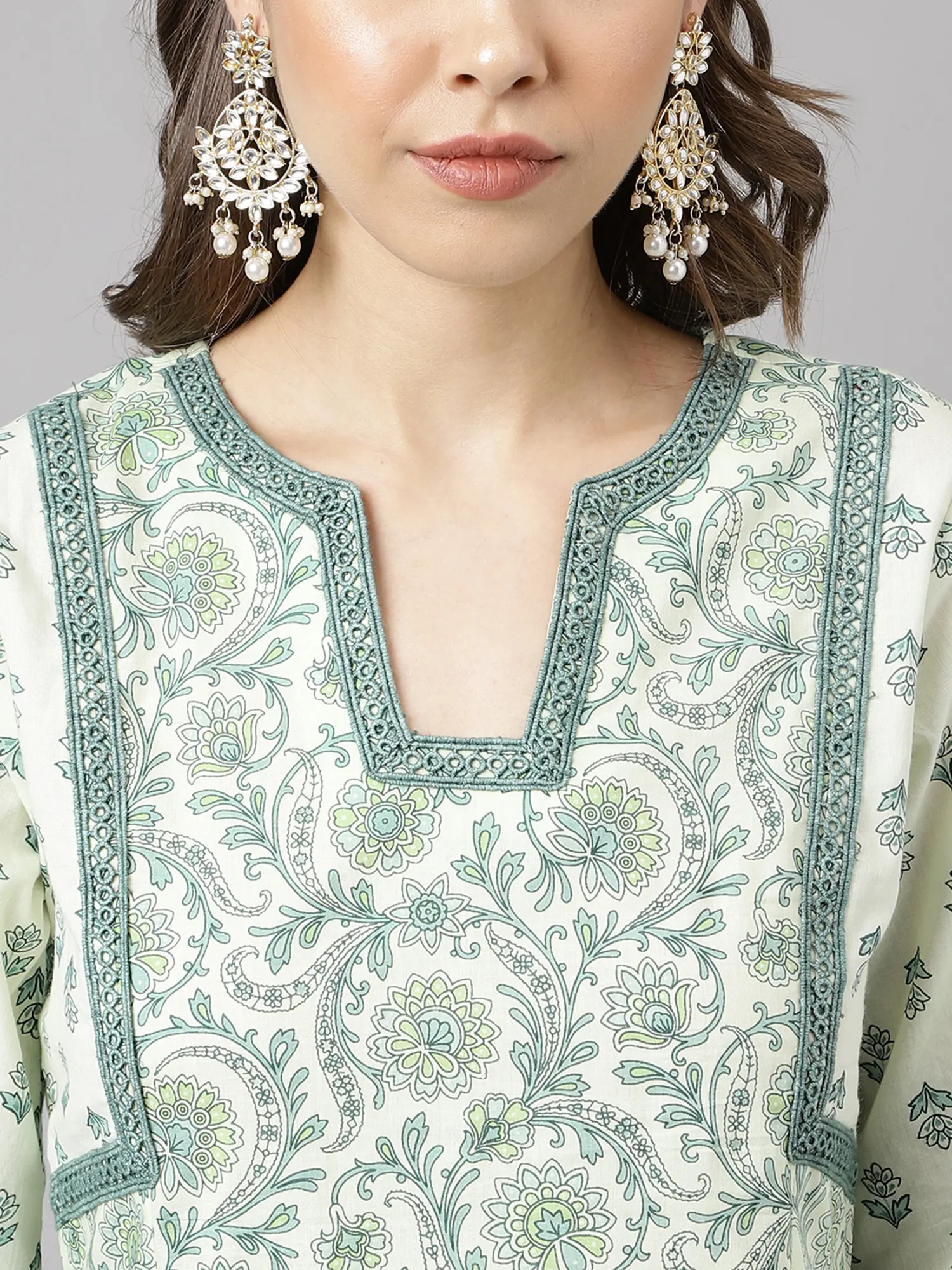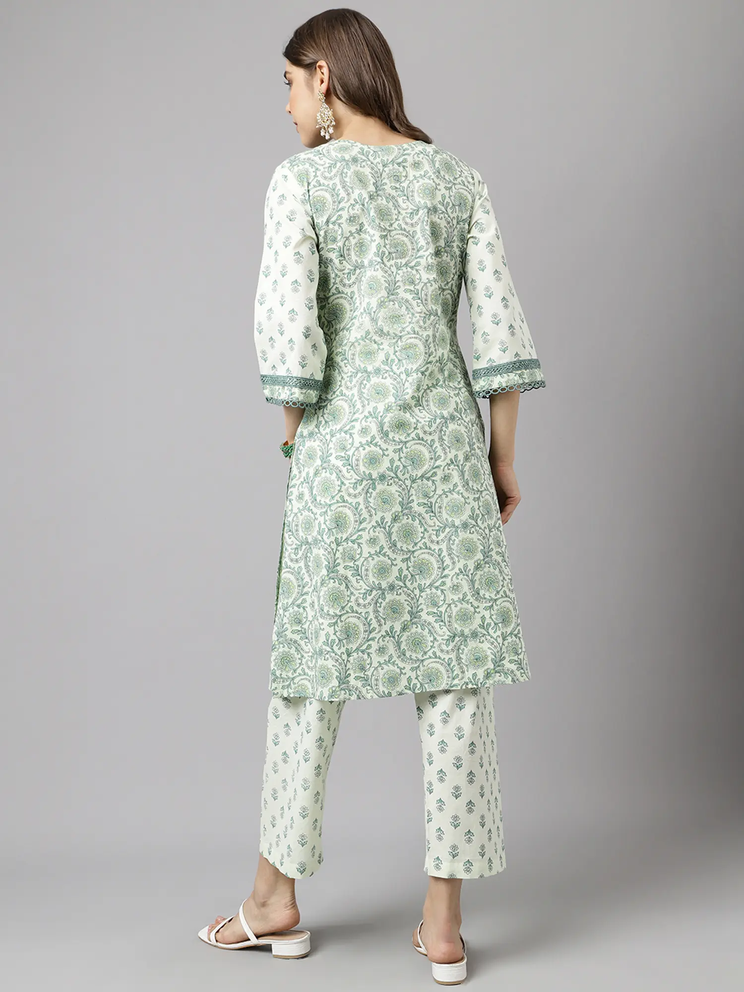 Step into a world of understated elegance with this charming kurta and bottom set. Designed for the modern woman who appreciates comfort and style, this ensemble is perfect for a relaxed day out or a casual gathering. The all-over floral print evokes a sense of fresh, natural beauty, making it a delightful addition to your wardrobe. The soft, breathable fabric ensures all-day comfort, even in warmer weather. The kurta features a flattering silhouette that drapes beautifully, enhancing your natural shape without feeling restrictive. The three-quarter sleeves are both practical and stylish, offering just the right amount of coverage.