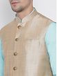 This Cotton Linen Kurta paired with a Cotton Blend Churidar Pajama and a Cotton Silk Modi Jacket (Waistcoat) creates a mesmerising and sophisticated ensemble. Crafted with precision and comfort in mind, the “Cotton Linen Kurta” offers breathability and a relaxed fit, ideal for any occasion. The “Cotton Blend Churidar Pajama” complements it seamlessly, providing a sleek and tailored look. The pièce de résistance is the “Cotton Silk Modi Jacket”, adding an element of elegance and versatility. Together, these garments offer a harmonious blend of tradition and contemporary style, making it a cherished choice for those seeking both comfort and fashion.