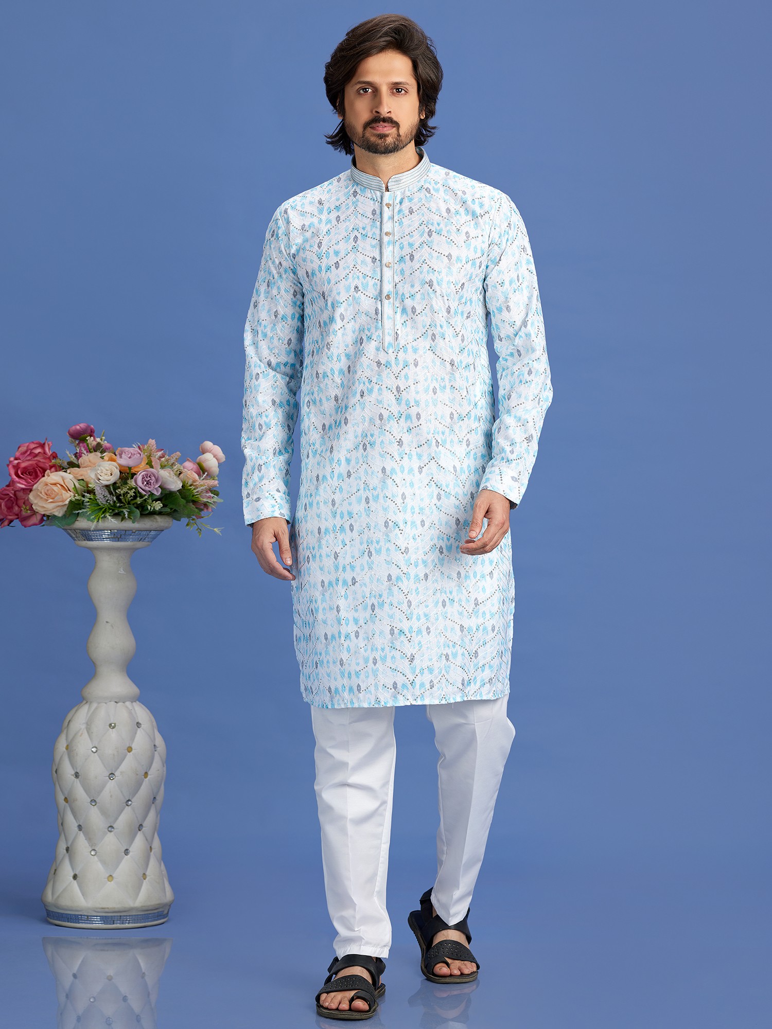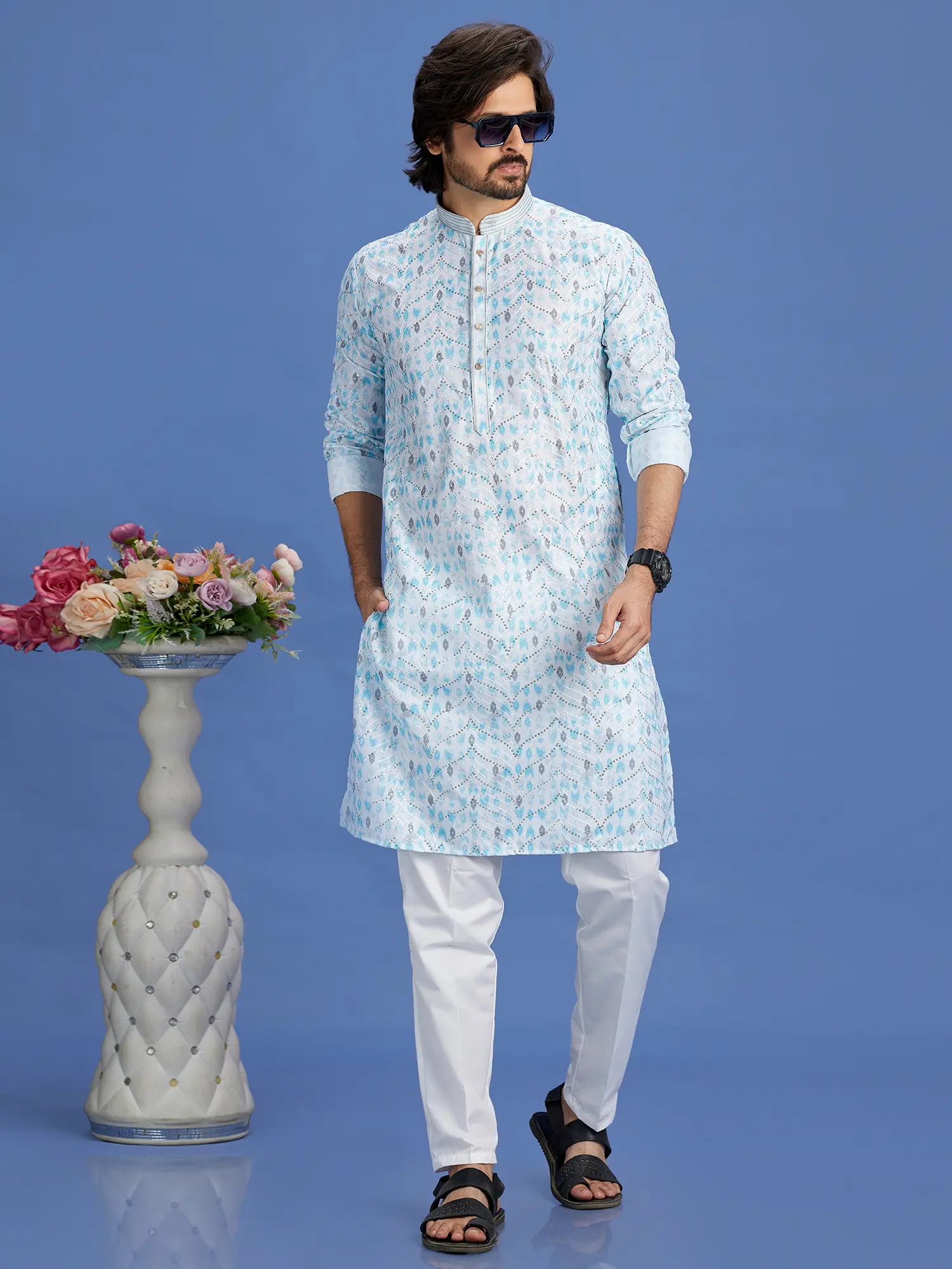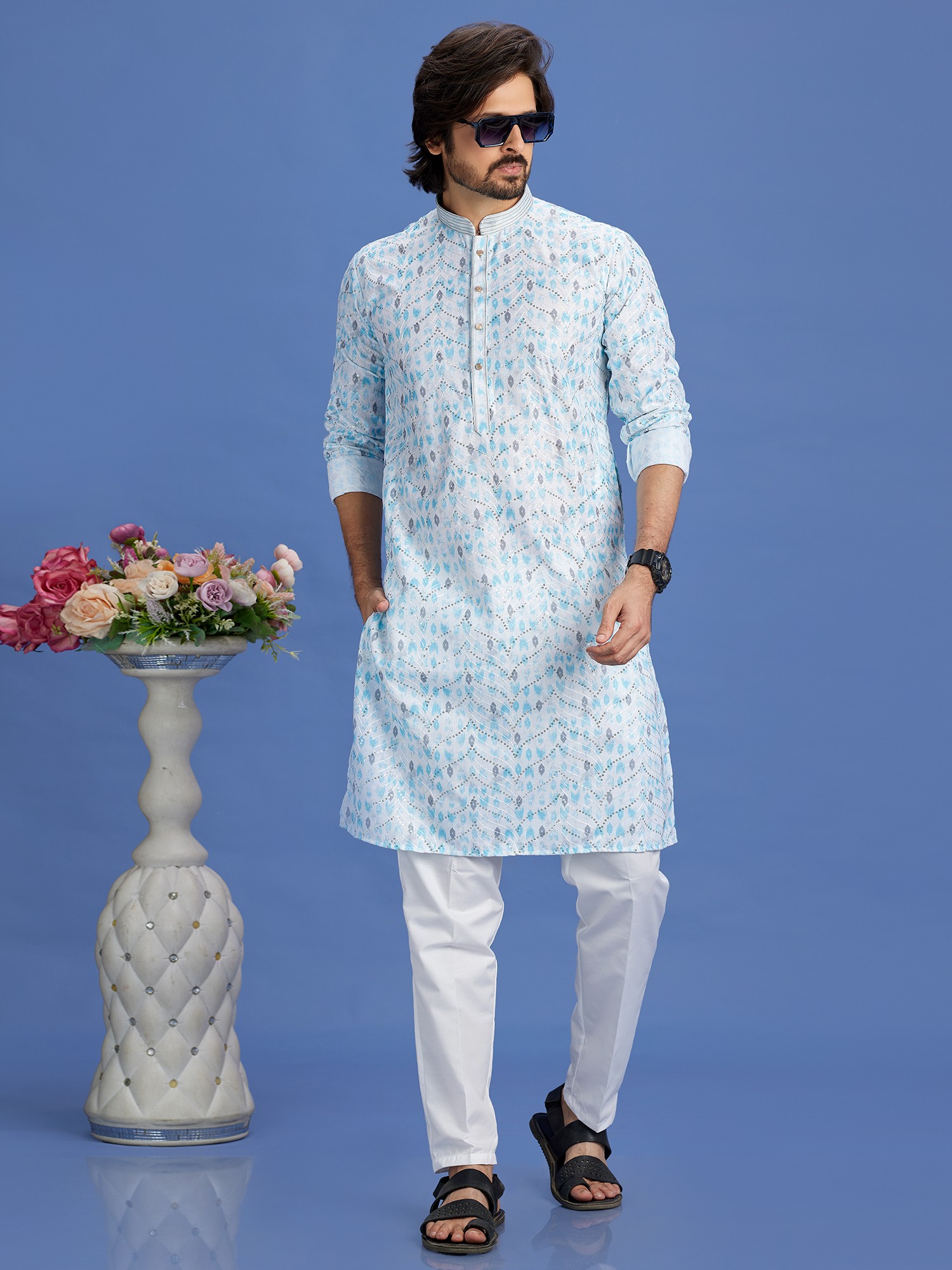 Plain Pure Cotton Kurta Pajama with Embroidery on Neck
