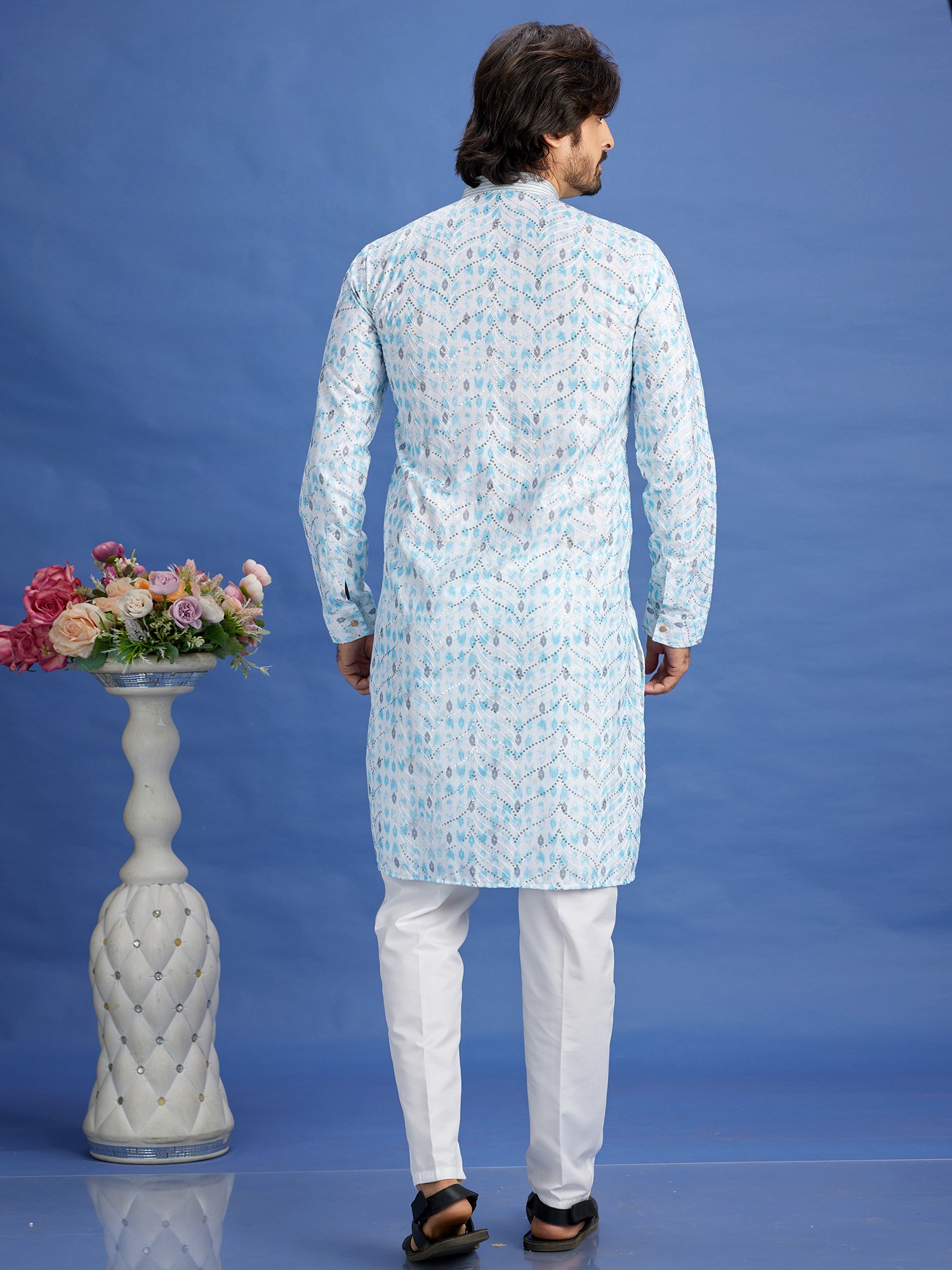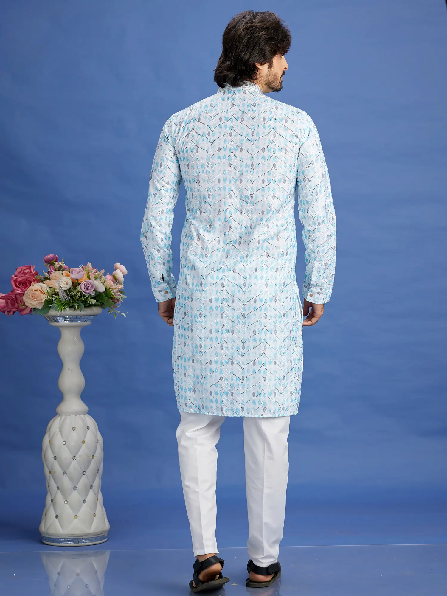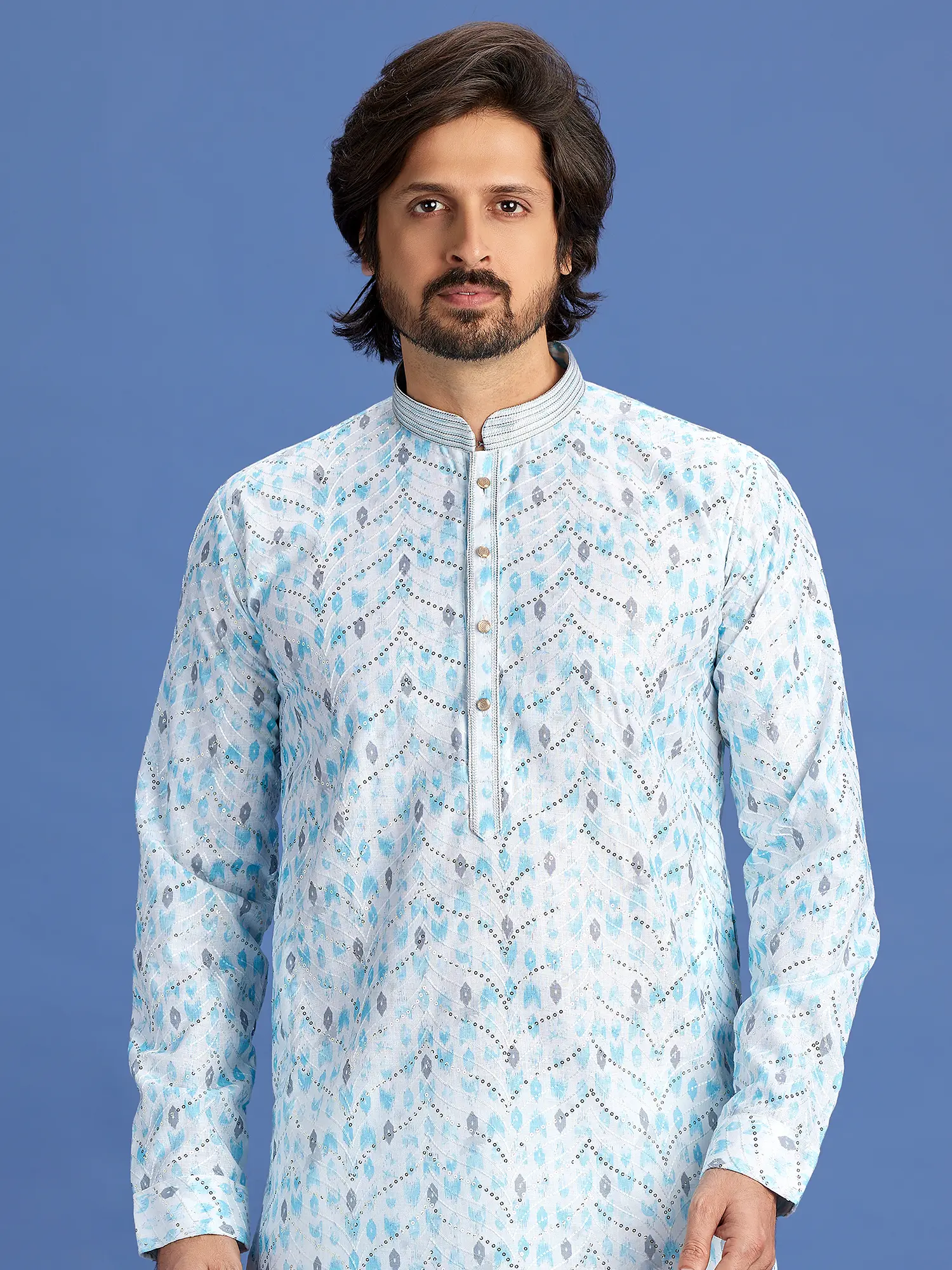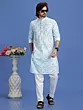 Plain Kurta Pajama Set with Zigzag Weave in Self and Embroidery on Neck