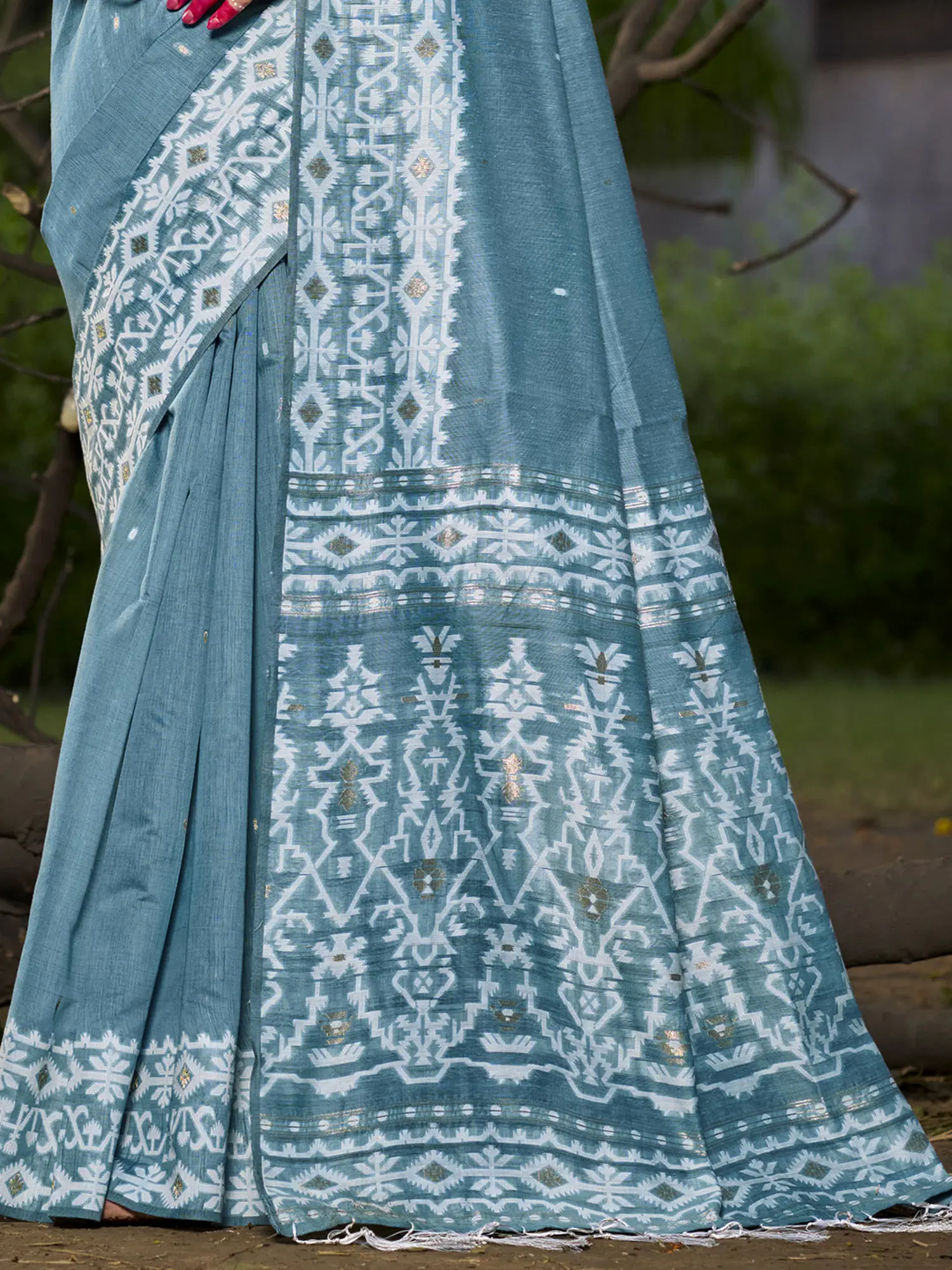 Transparent-Yellow Cotton Saree with Paisley Print and Zari Border from Telangana