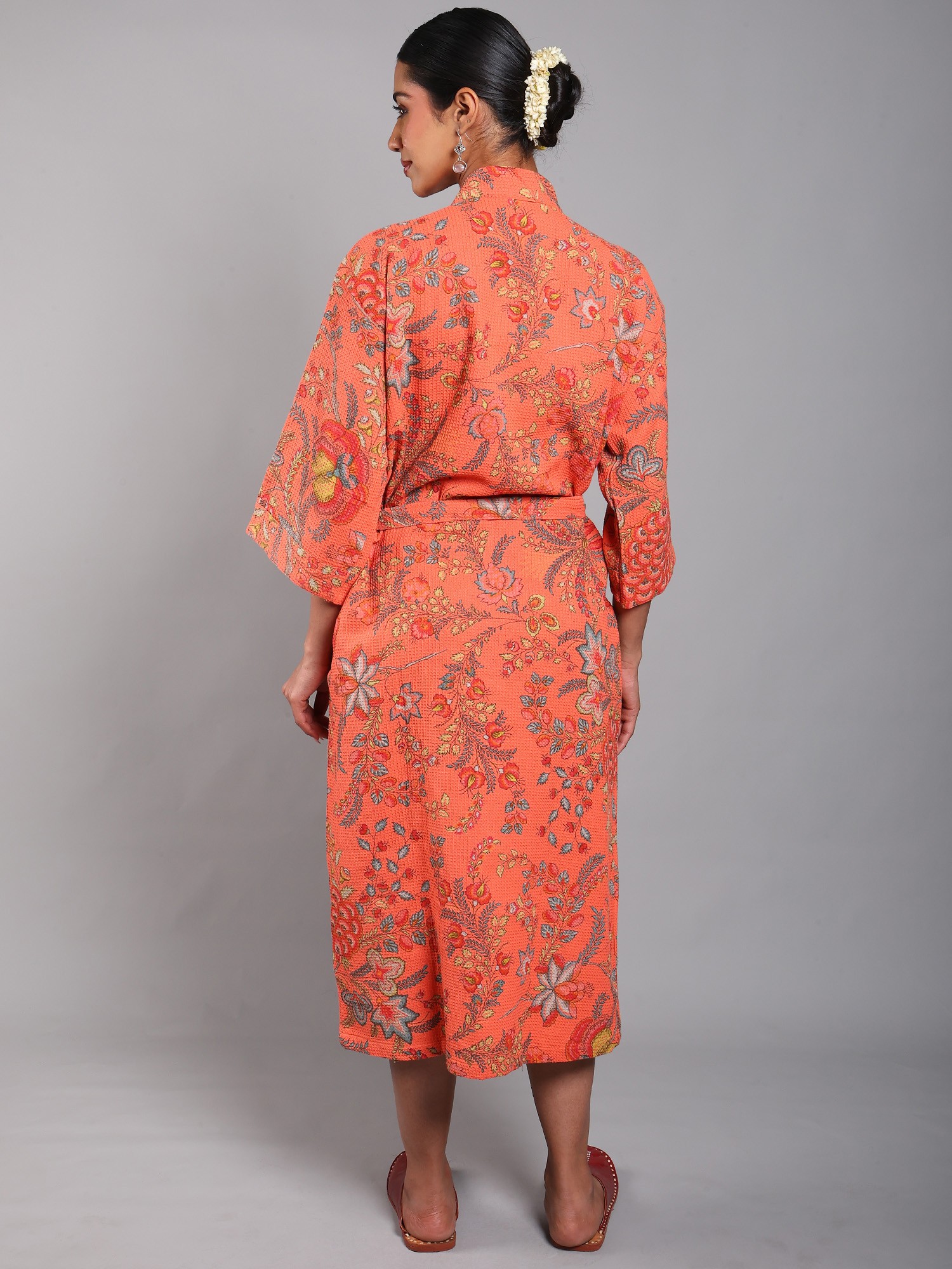 To keep your robe looking its best, we recommend machine washing it in cold water on a gentle cycle and tumble drying on low. Avoid using bleach, as it may fade the delicate print. Iron on low if needed.