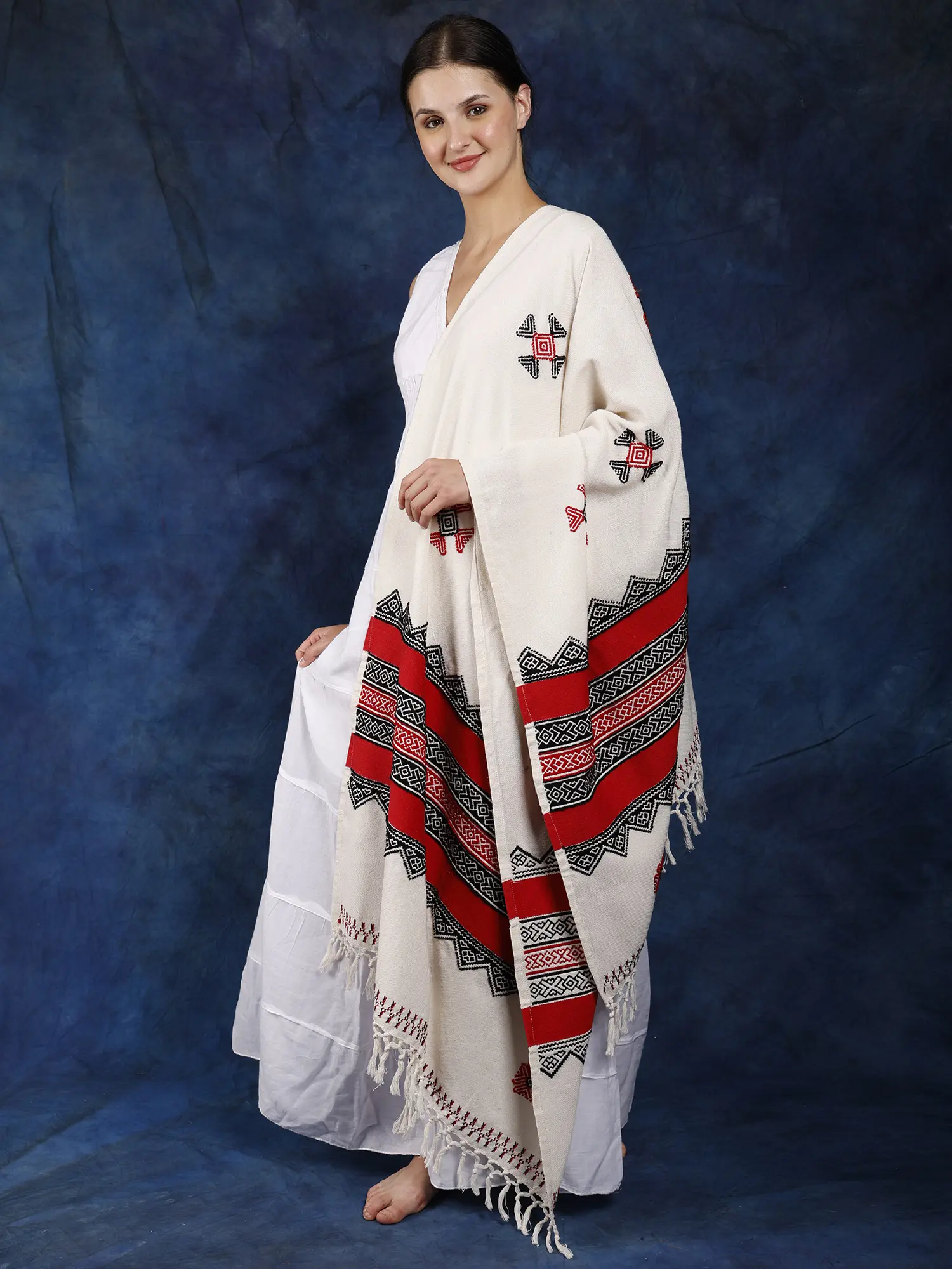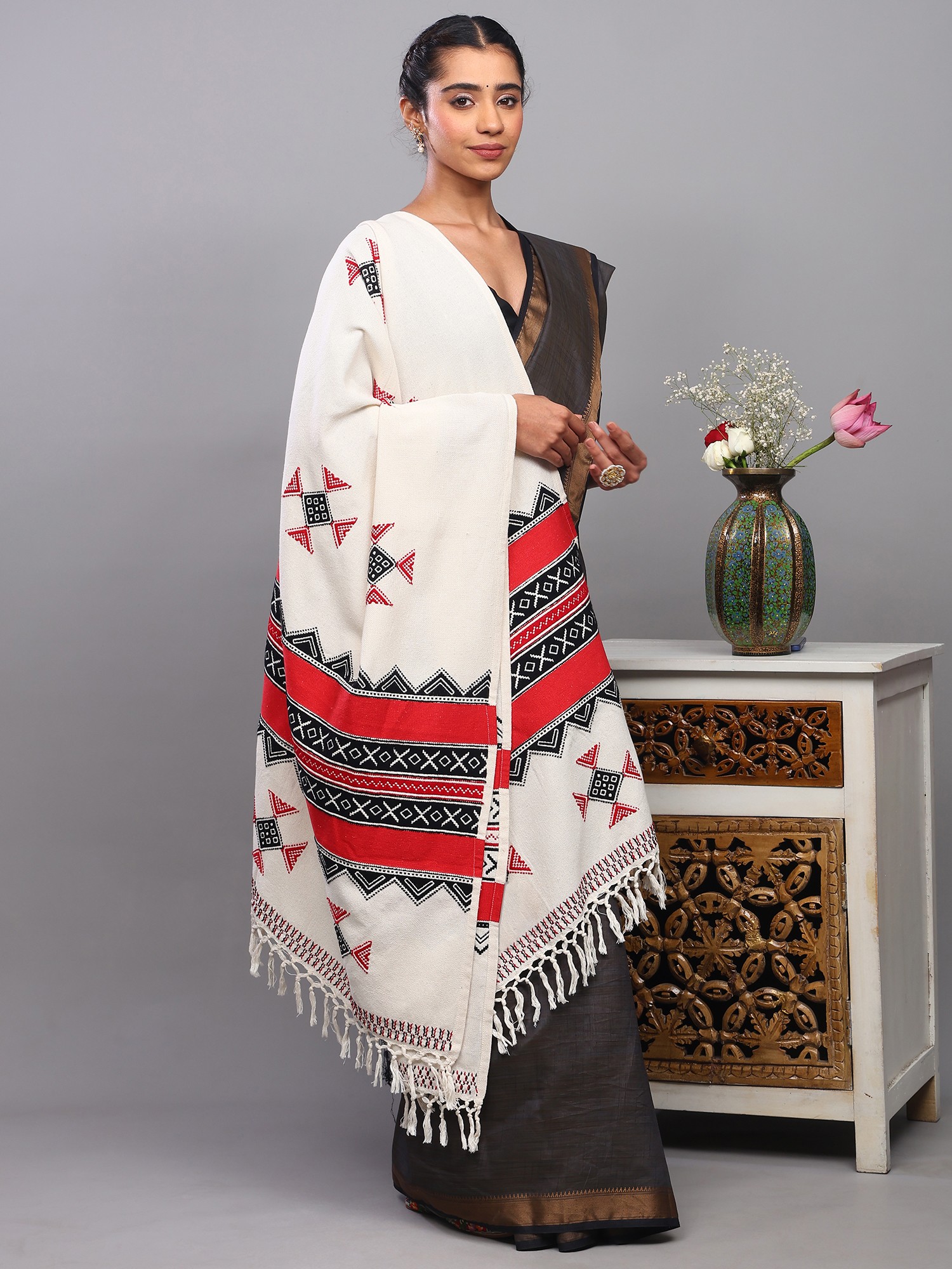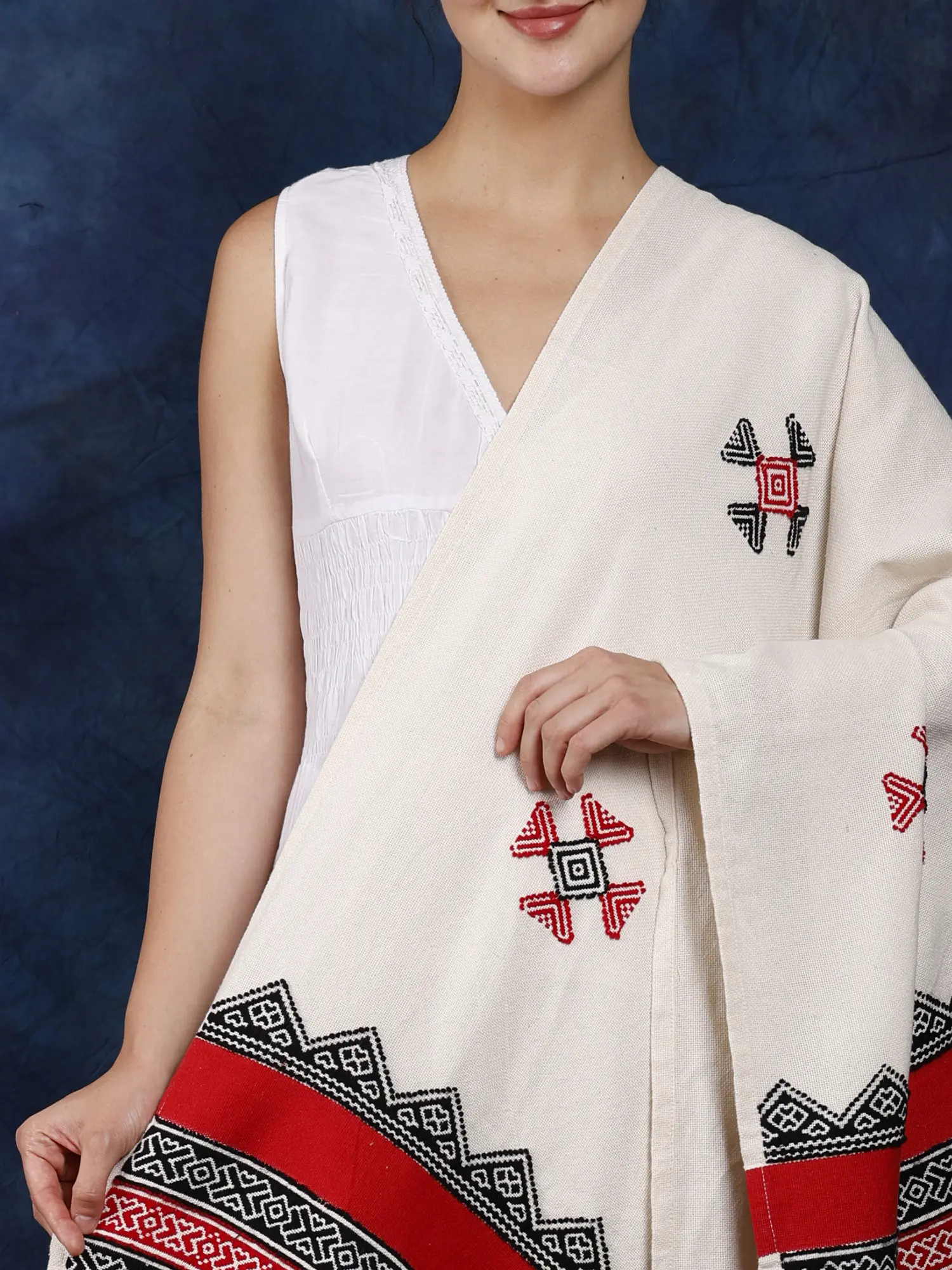 A Tapestry of Tradition: Introducing the Ivory Cotton Shawl with Toda Embroidery