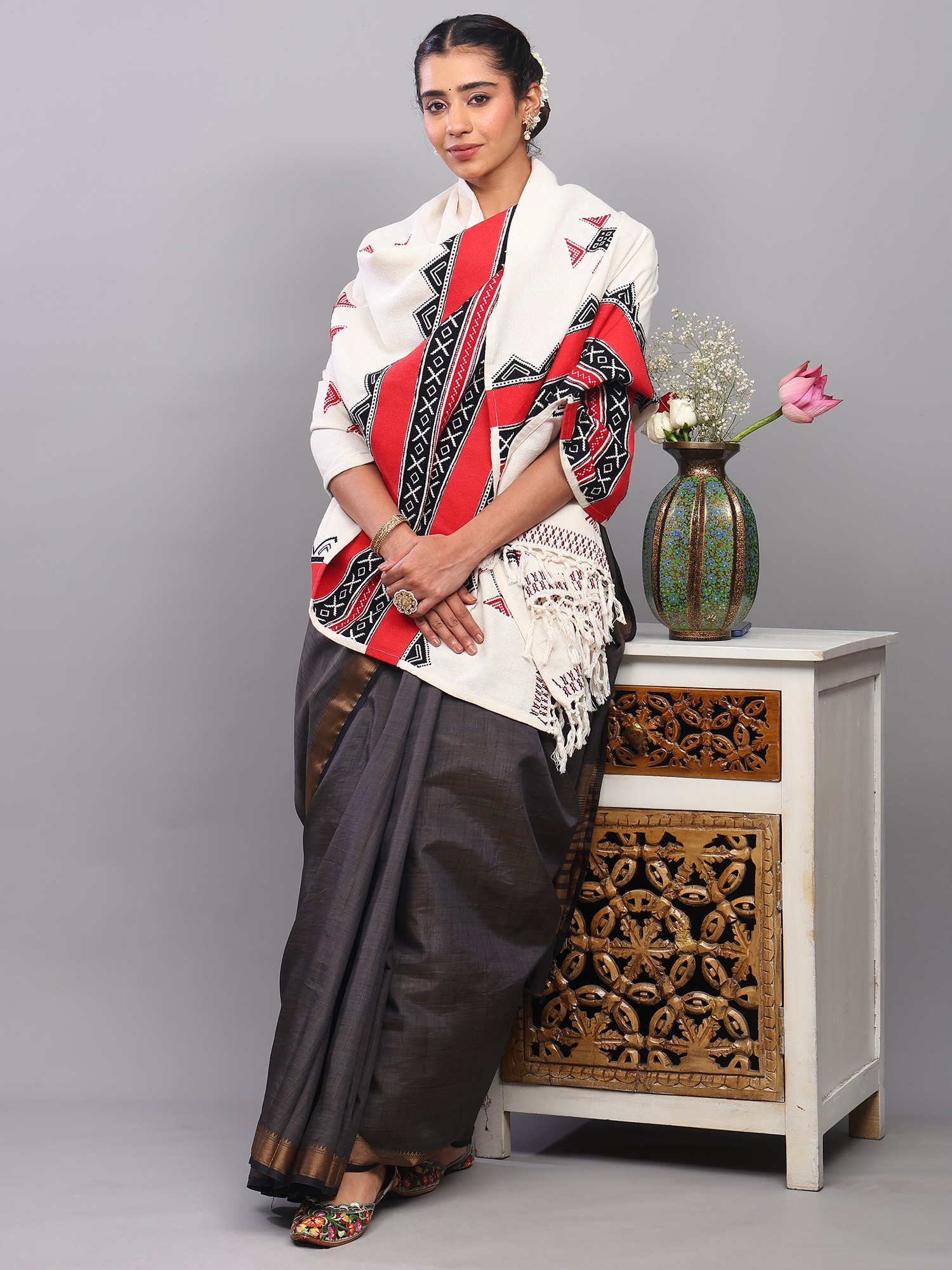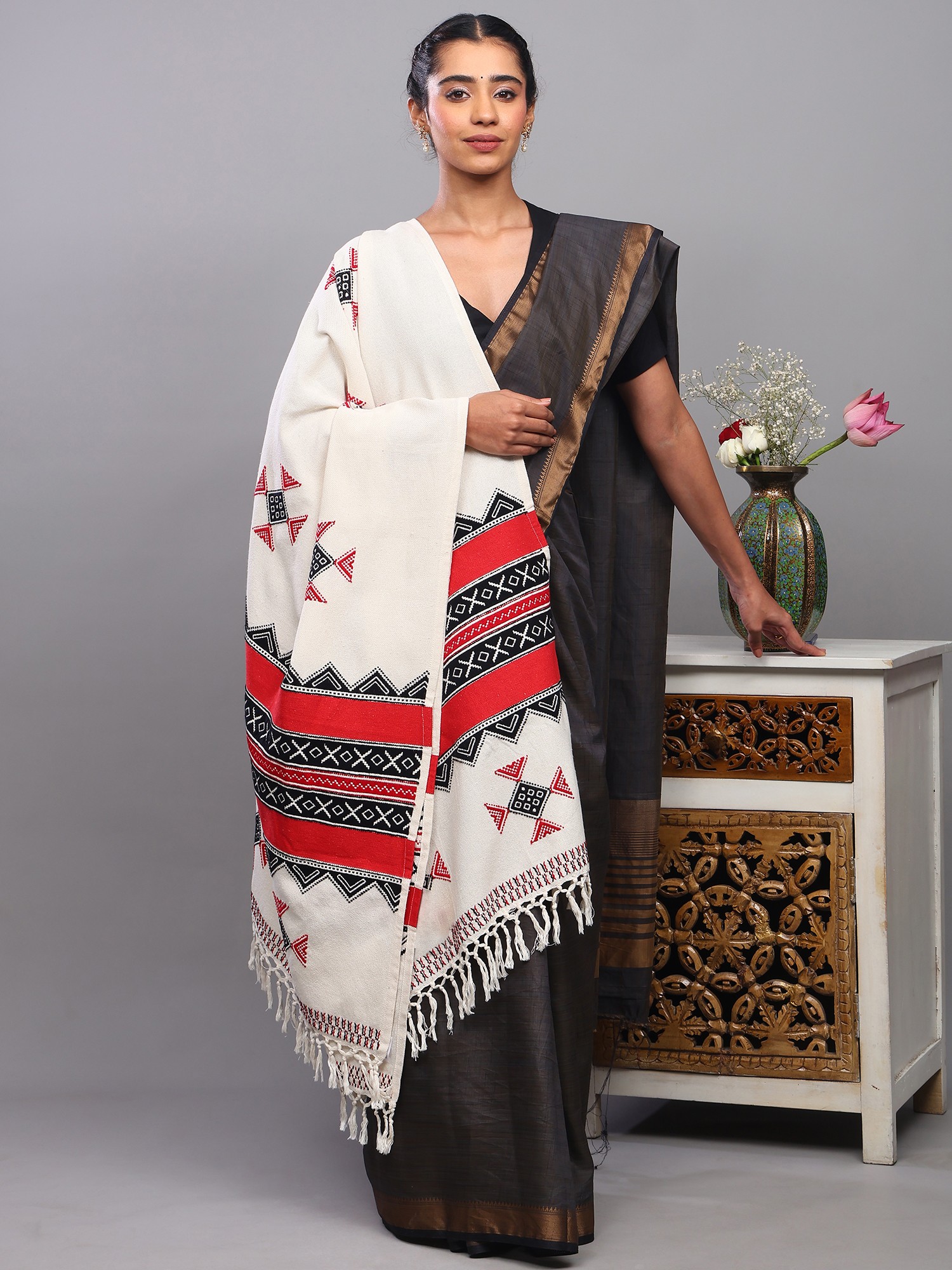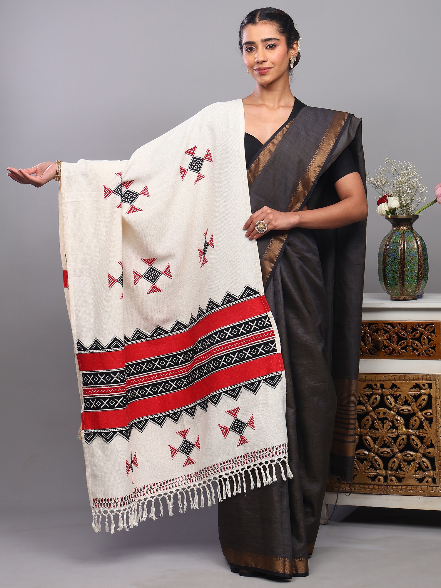 A Tapestry of Tradition: Introducing the Ivory Cotton Shawl with Toda Embroidery