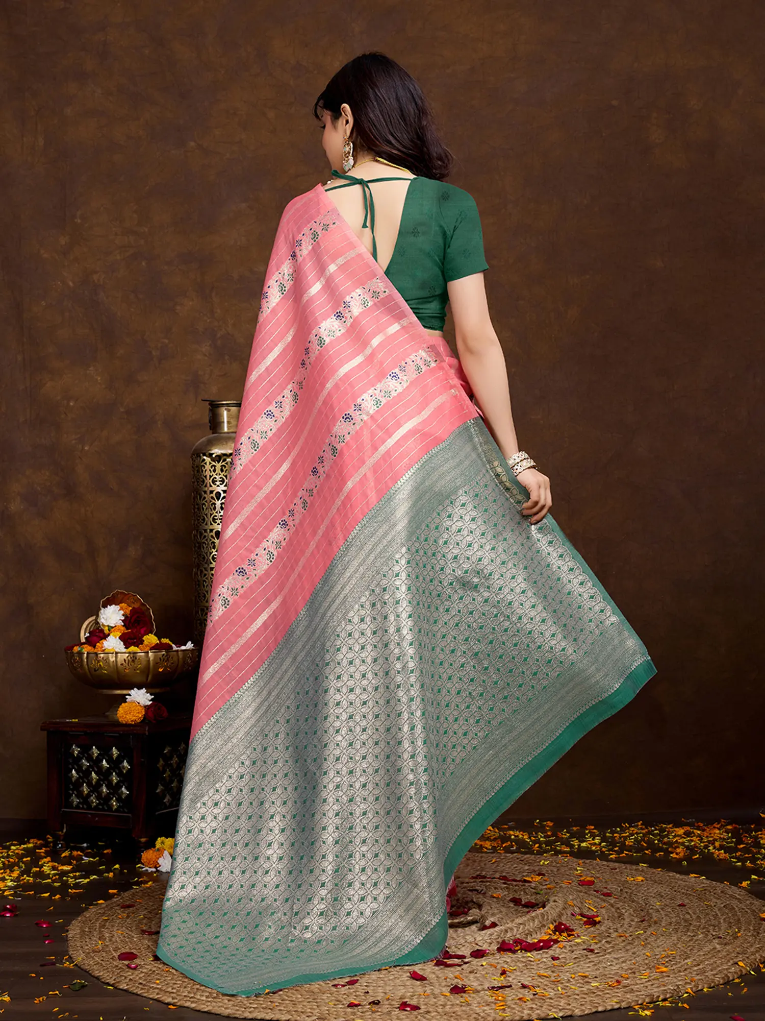 Cotton Silk Stunning Stripe Pattern Festive Wear Saree With Woven Tassels Pallu