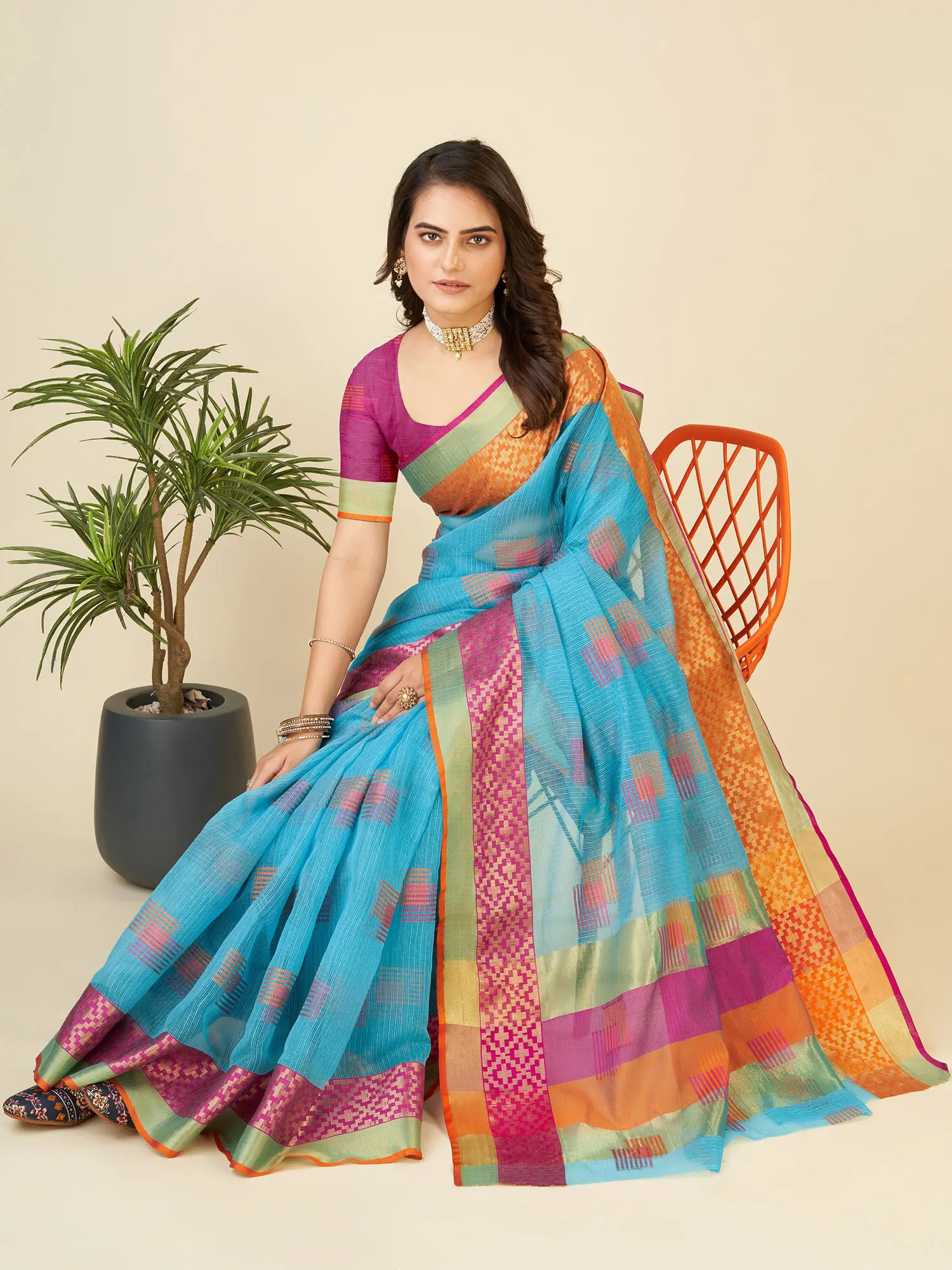Stunning Cotton Silk Broad Border Geometric Pattern Festive Wear Saree