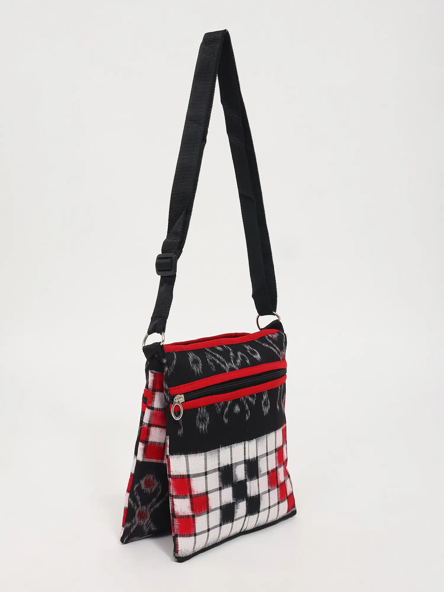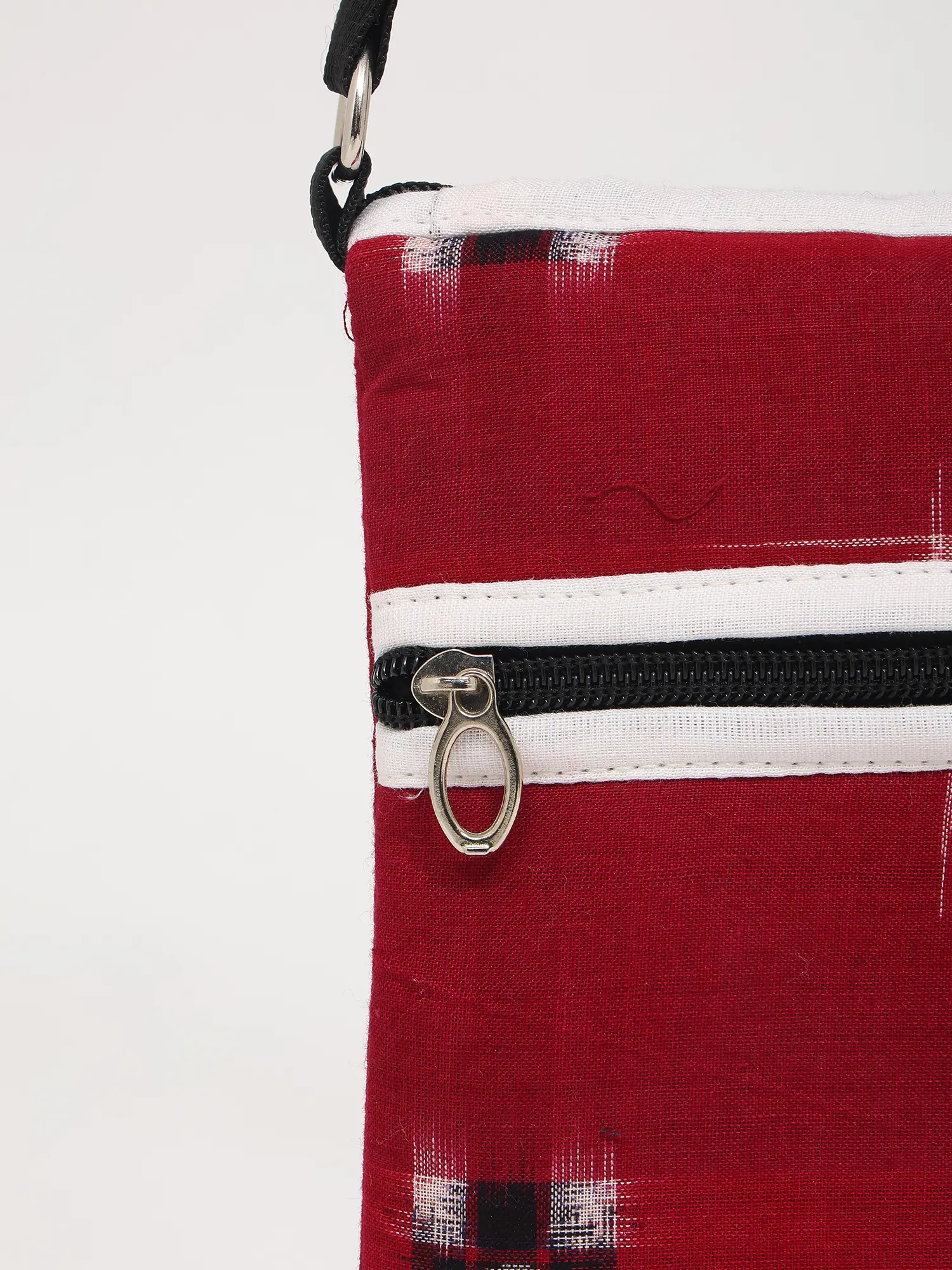 Cotton Sling Bag for Women with Zipper Closure and Ikat Weave