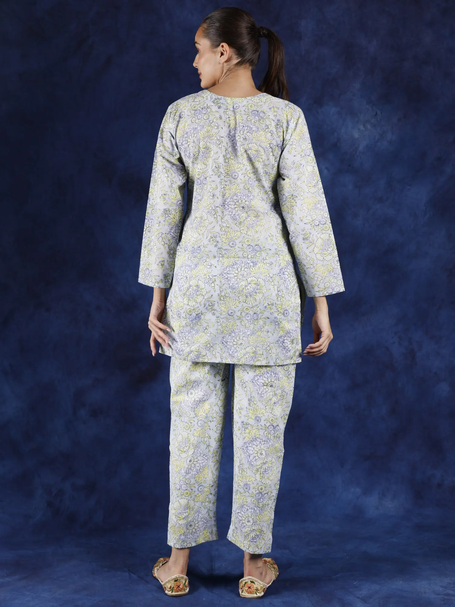 Racing-Red Floral Printed Co-Ord Set for Evening Wear
