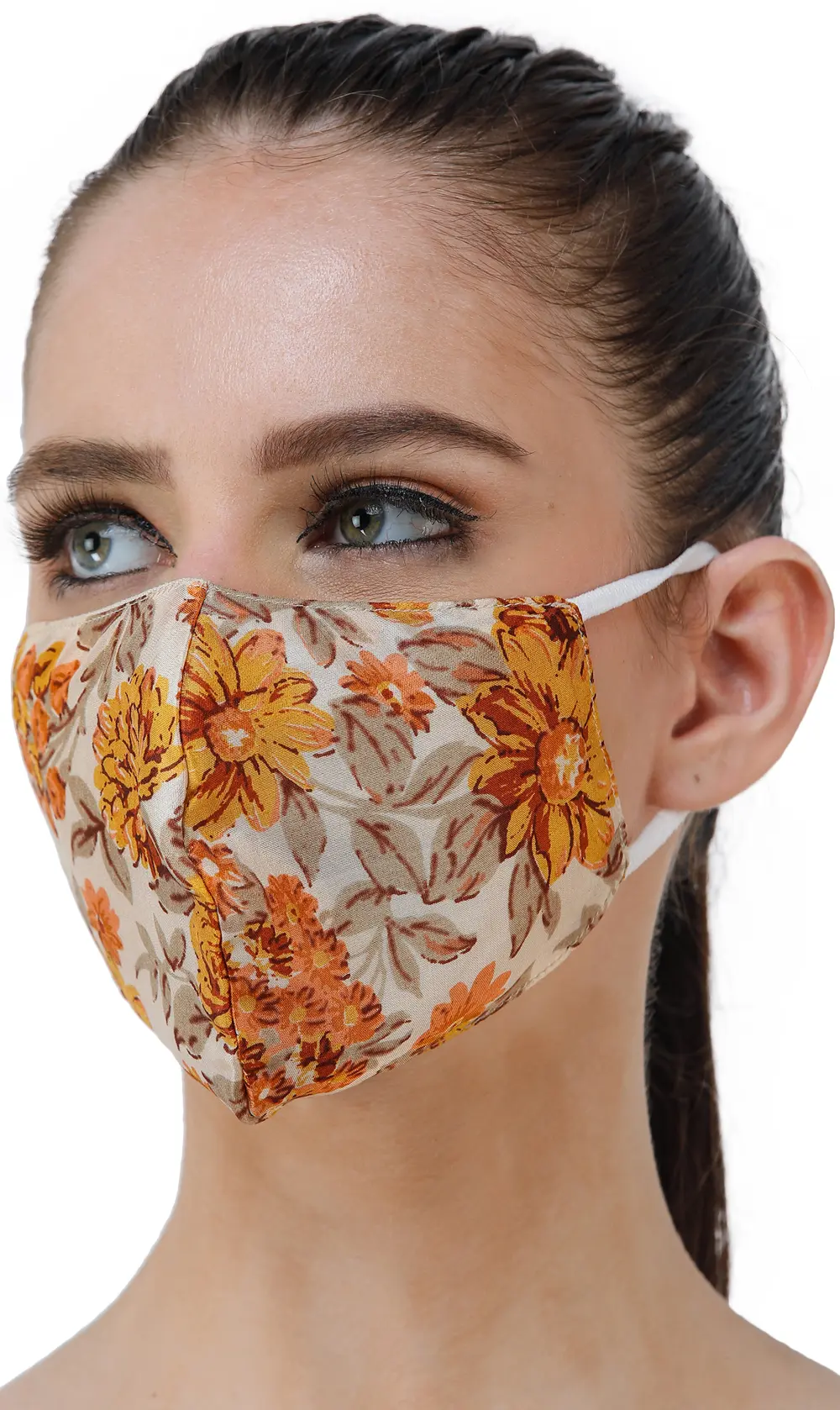 Prepared from pure silk, this mask is more than just a shield—it is a symbol of grace and resilience. Adorned with enchanting floral prints, this mask from Gandhi Ashram merges fashion with functionality. The cream and amber hues evoke a sense of tranquility and warmth, while the two-ply design ensures optimum protection without compromising comfort.