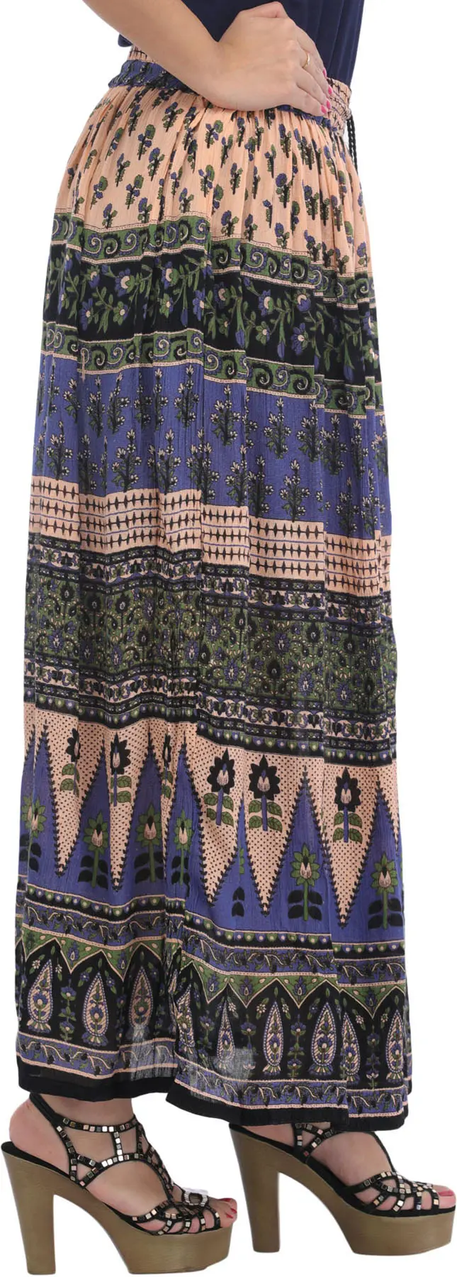 Multi-Color Long Skirt with Printed Paisleys and Sequins