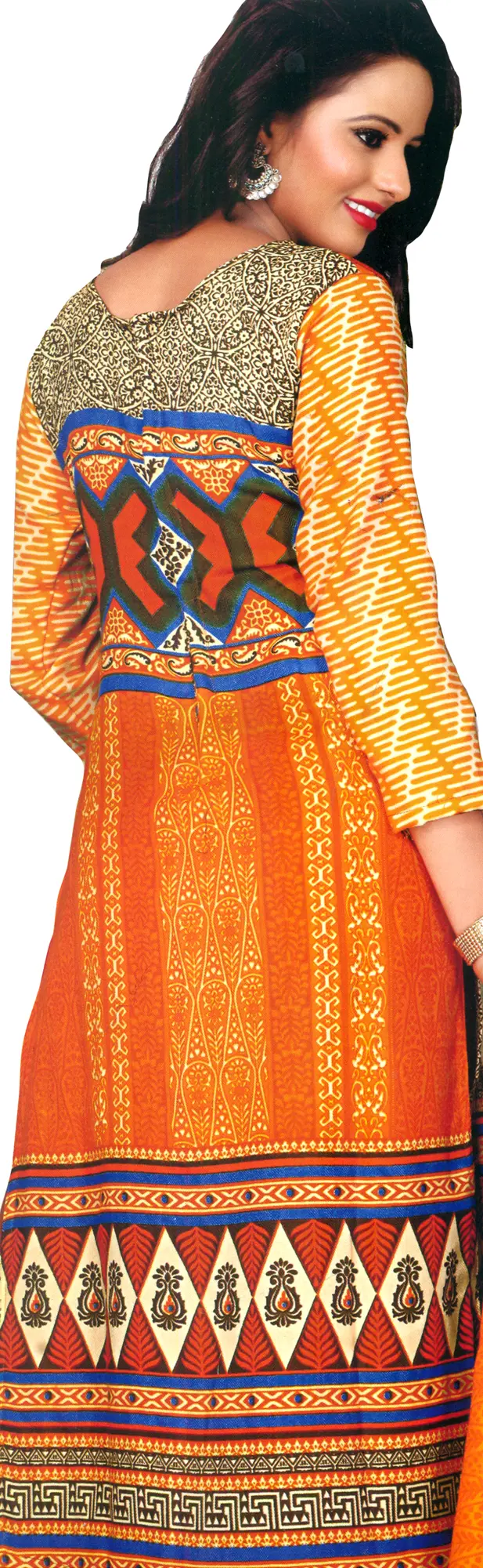 Afghan Suit with Flared Skirt, Multi-Coloured Embroidery and Bead-Work