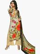 Cream Long Parallel Salwar Suit with Printed Flowers and Embroidery on Salwar