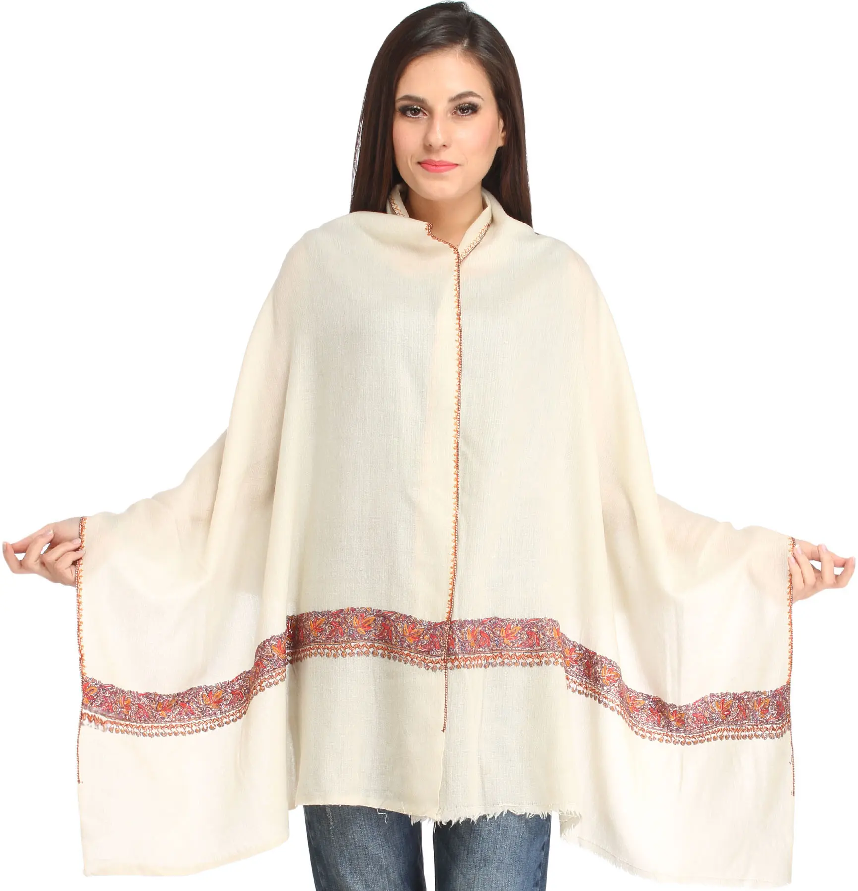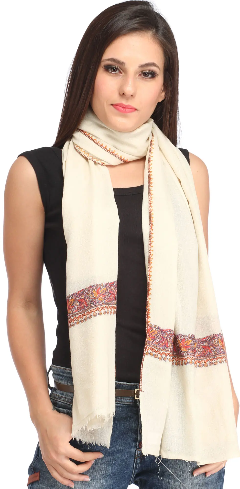 Multicolor Sozni Embroidered Shawl with Woven Pin-Stripes Patterns from Amritsar