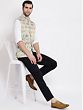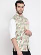 This Cream Silk Blend Elongated Hexagon Pattern Modi Jacket symbolizes refined sophistication and modern flair. The print on the jacket is inspired by the Mughal flowers and their placement of marble panels. The Silk Blend fabric used in this jacket gives it a luxurious look. The subtle cream hue exudes timeless elegance, perfect for formal occasions or cultural celebrations. The Jacket is meticulously tailored and perfect for the most handsome man. The high collar, also known as the Galabandh, gives the jacket that extra brownie points for making a fashion statement. This statement Modi Jacket, where traditional and contemporary design blend creates a harmonious fusion.