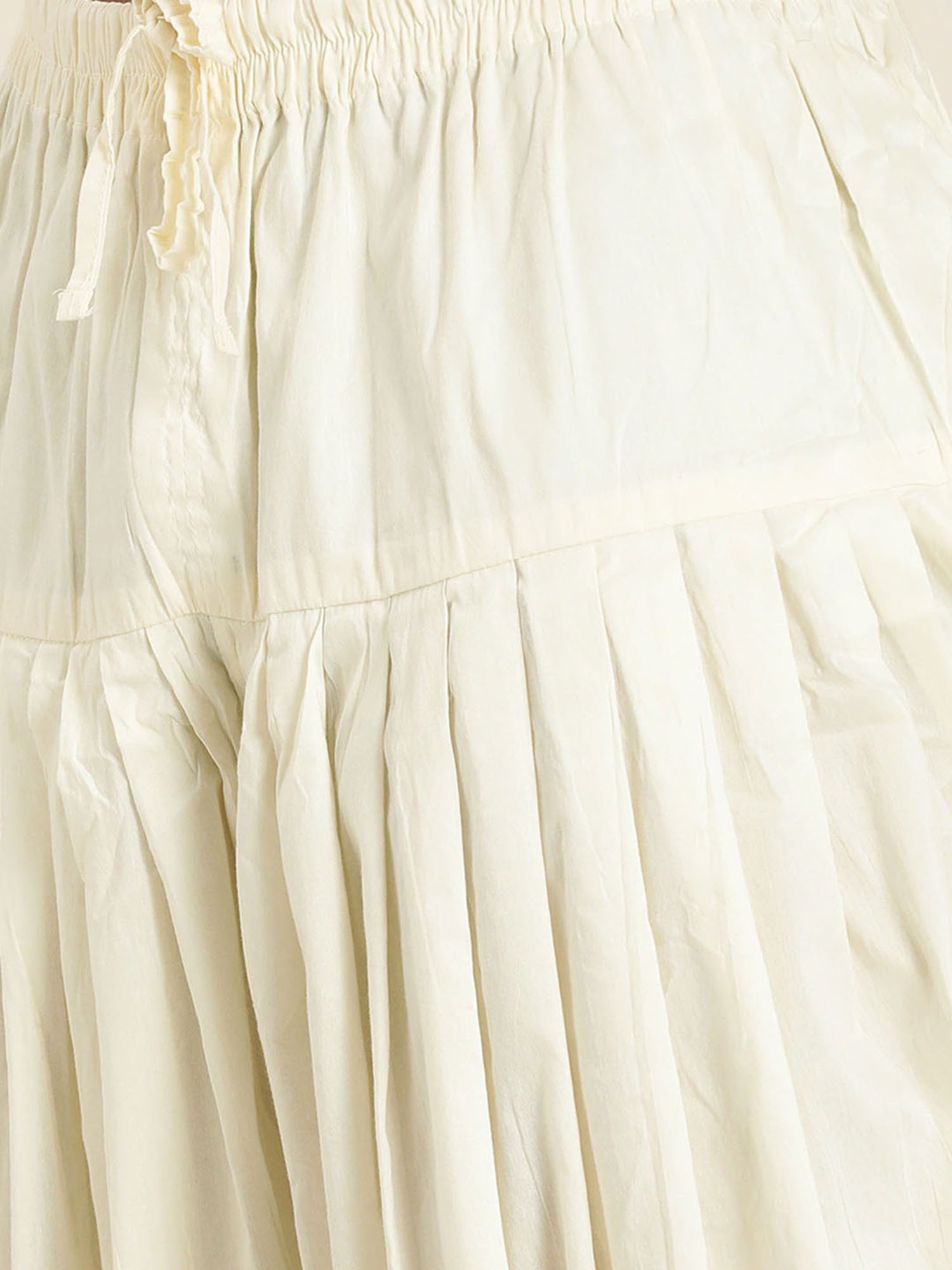 Cotton Blend Pathani Style Cream Kurta with White Patiala Salwar and Prayer Cap