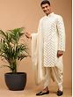 Cream Silk Blend Mirror Work Achkan Style Sherwani And Dupatta With Viscose Blend Cowl Style Patiala Dhoti