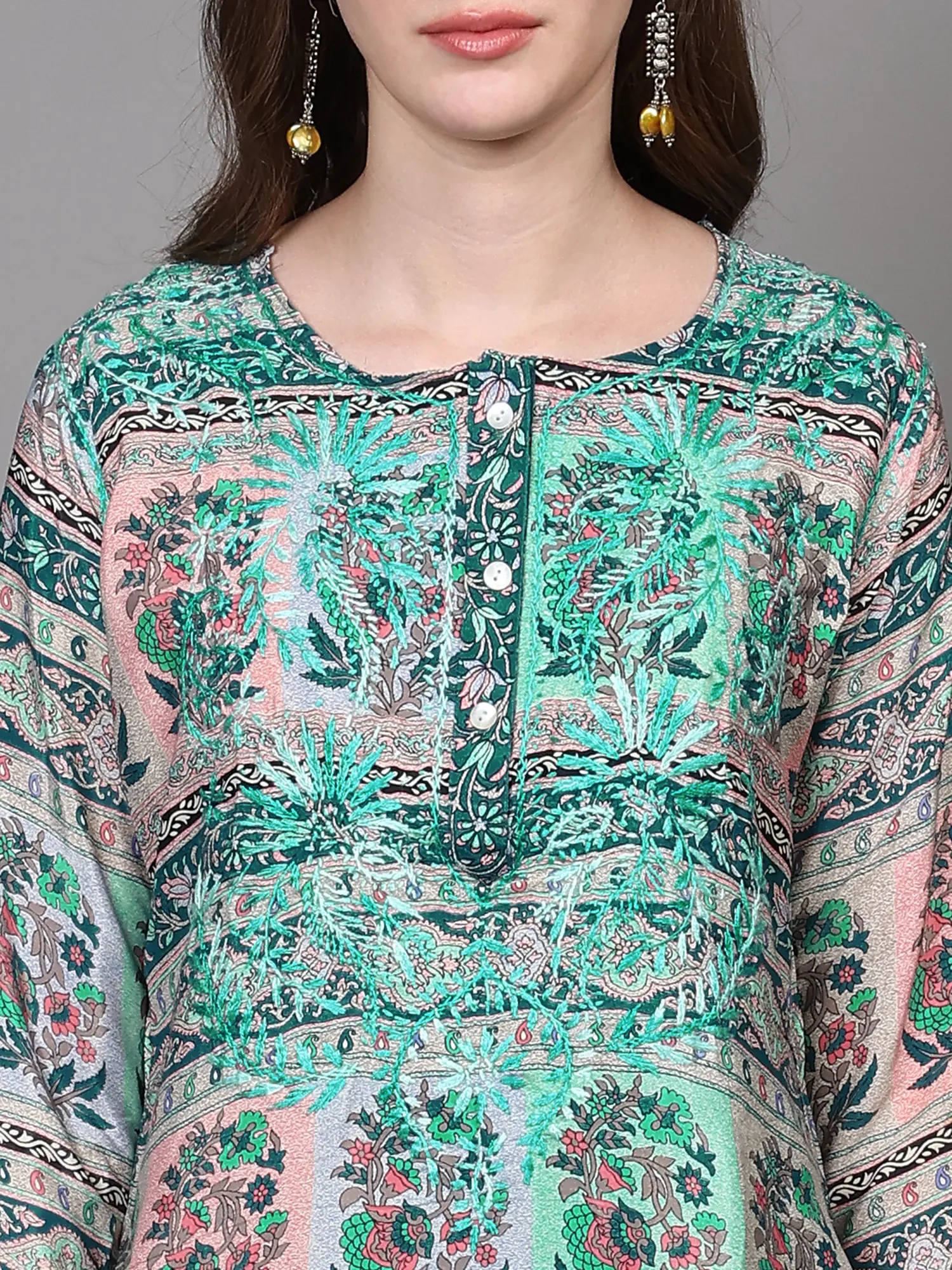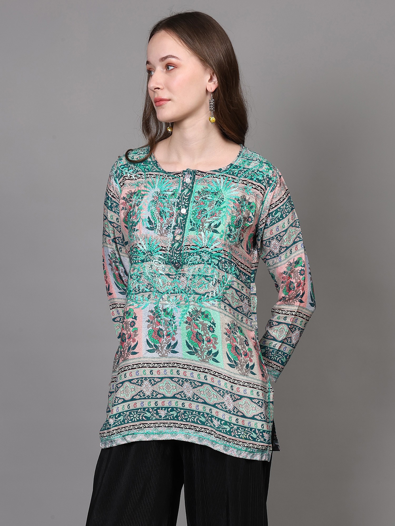 Frost-Gray Pure Wool Short Kurti from Kashmir with Aari Embroidery