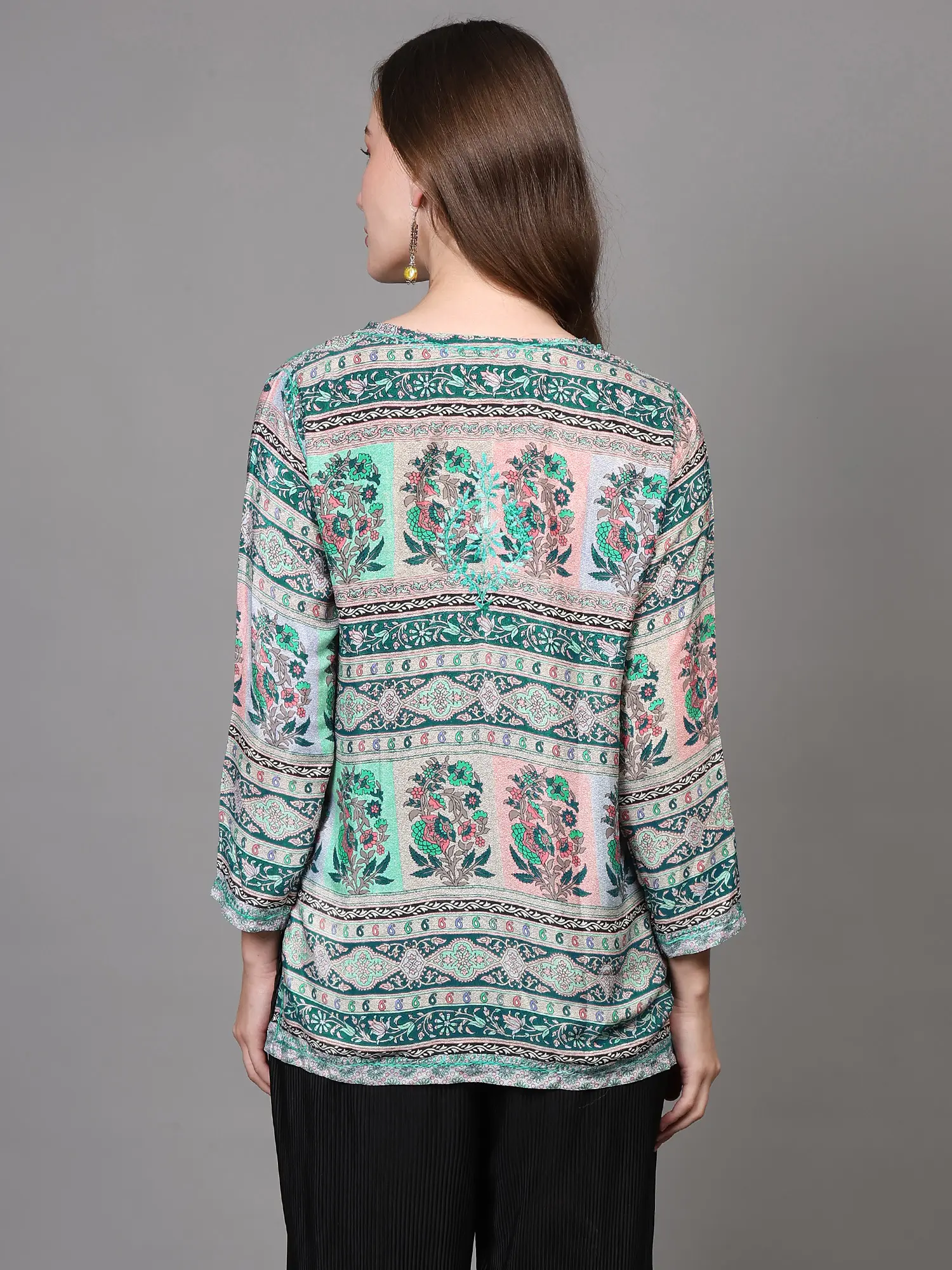 Embroidered Crepe Short Kurti with Printed Bootis