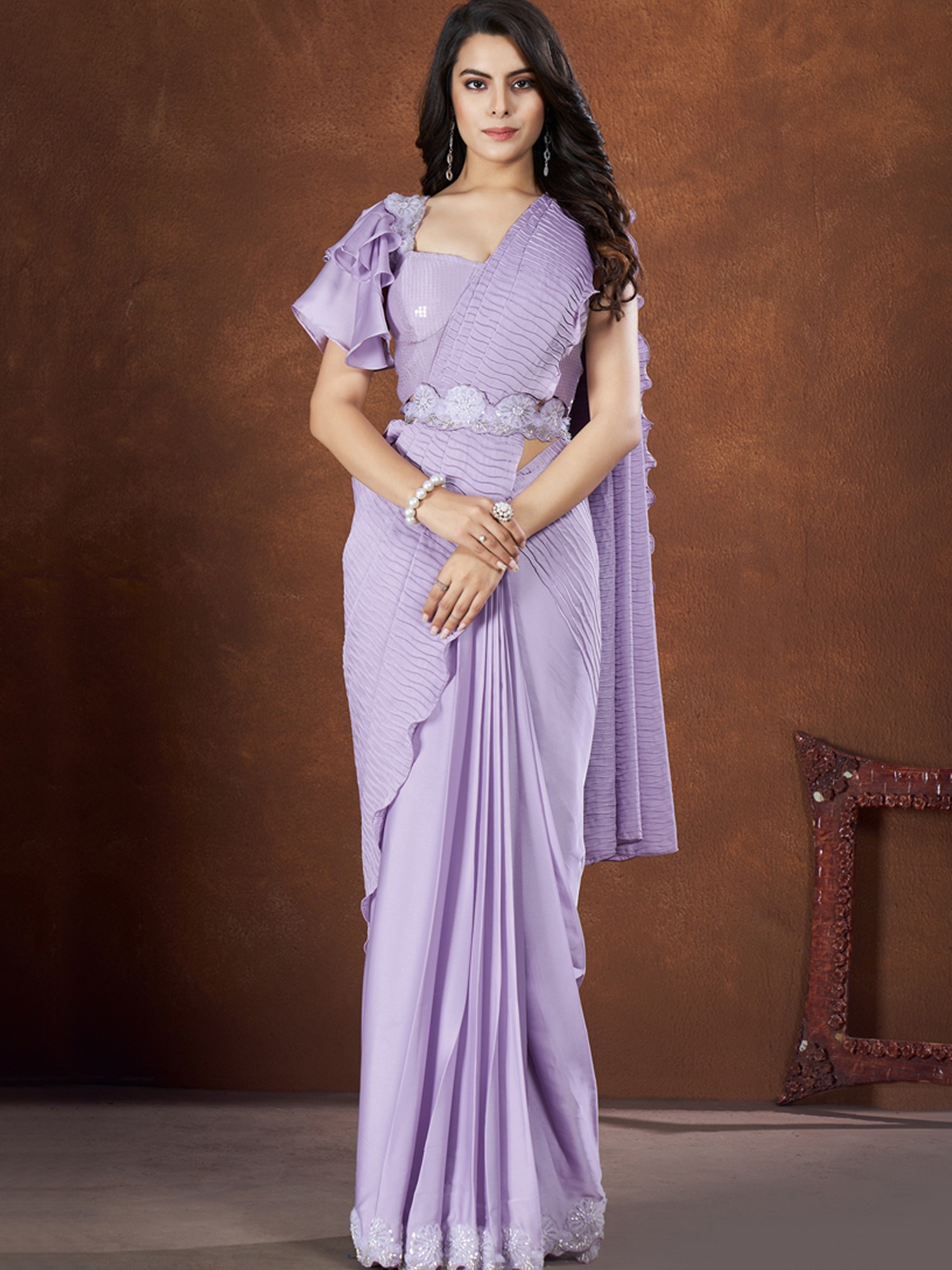 Crepe Satin Silk Embroidered Saree With Right Sholder Designer Blouse