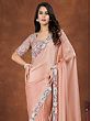 Crepe Satin Silk Sequence Embroidered Peach Nectar Saree With Stitched Blouse