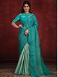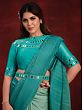 Crepe Silk Georgette Mirror Thread Work Light Sea Green Saree And Textured Pallu With Malai Satin Blouse And Belt