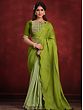 Crepe Silk Georgette Zari Bridal Look Avocado Saree With Malai Satin Blouse And Belt