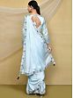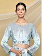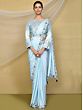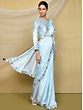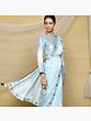Crepe Silk Satin Cord & Sequence Embroidered Light Blue Saree And Flower Border With Embroidered Blouse