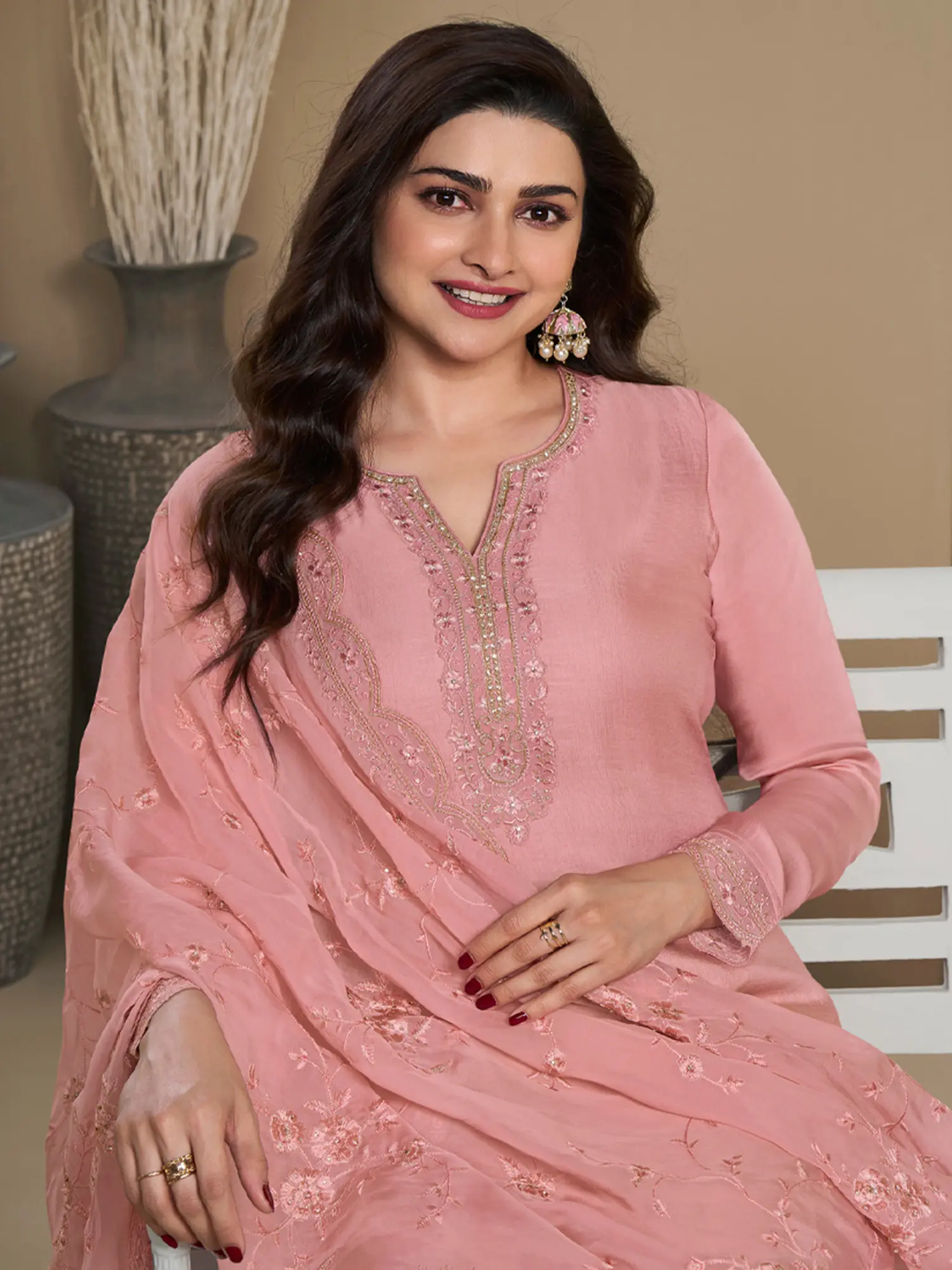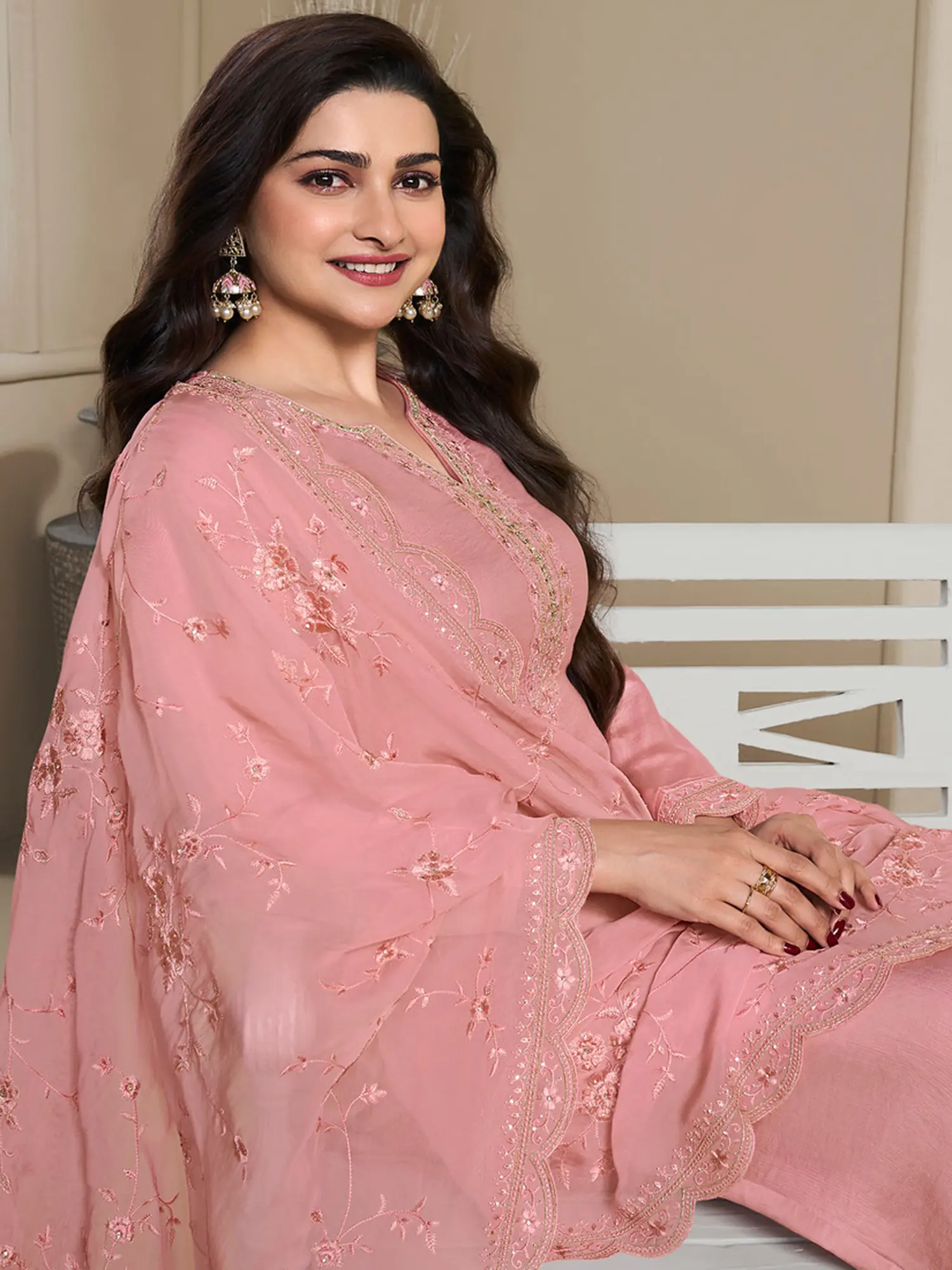 Embroidered Chinon Salwar Kameez Set with Organza Dupatta for Parties