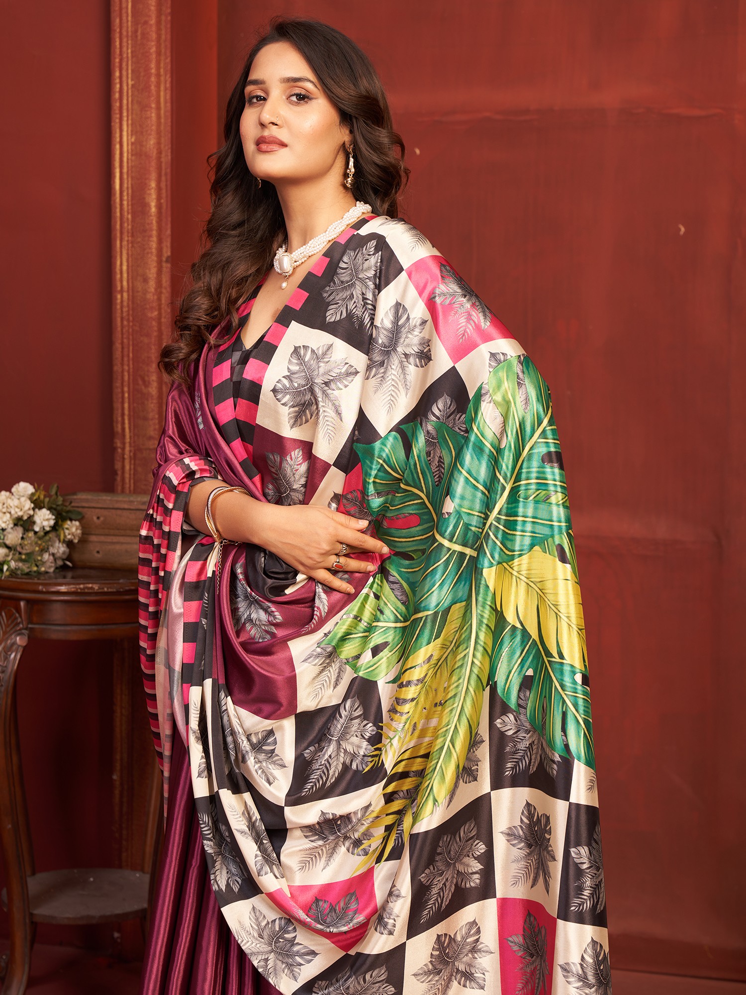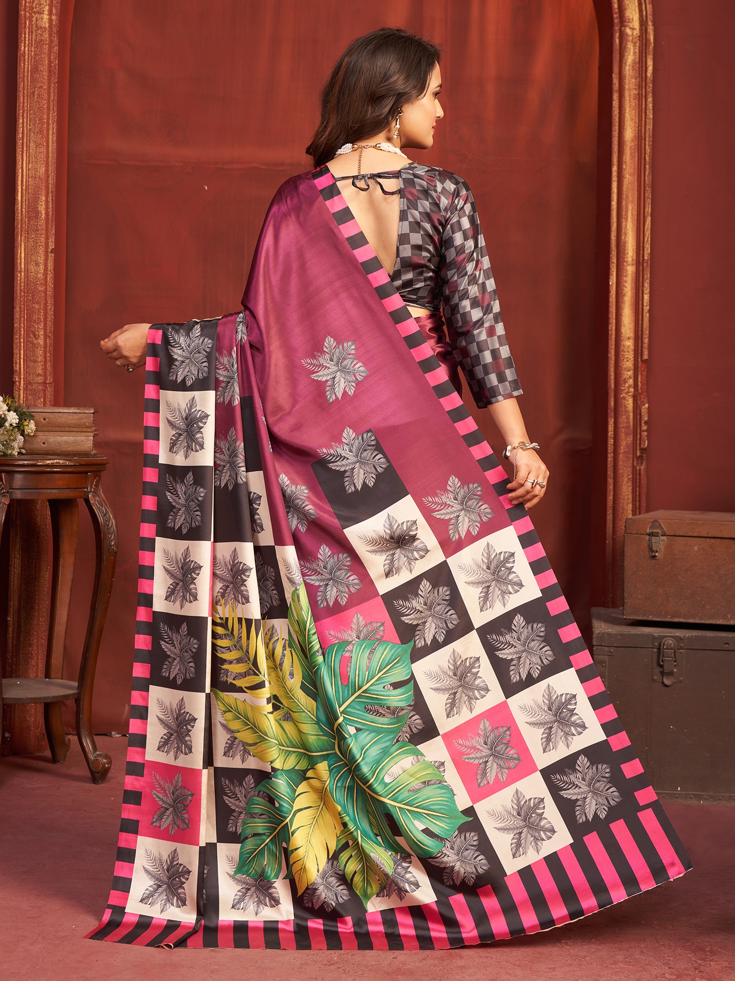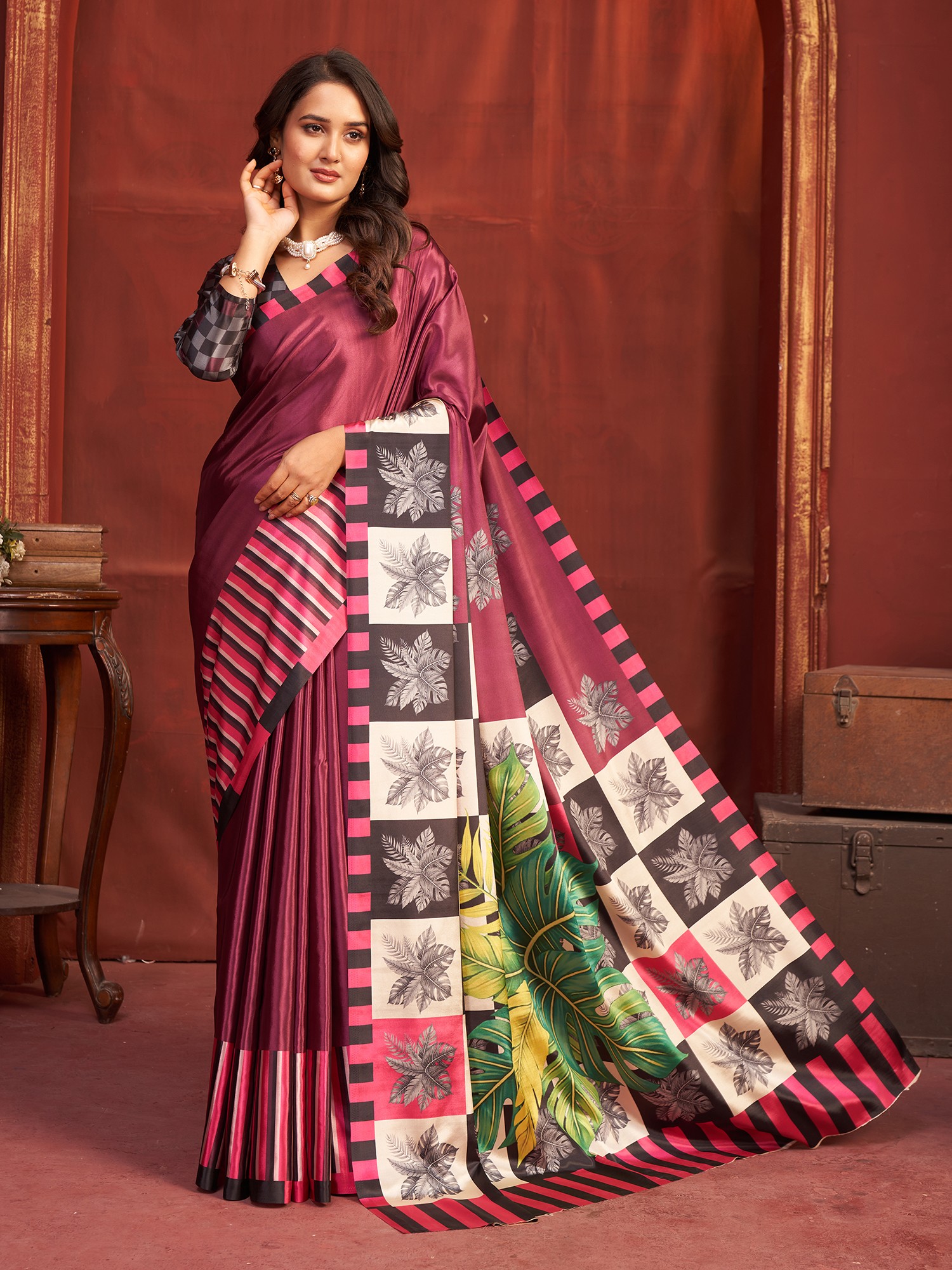 Steel-Grey Crepe Silk Deep Print Saree Contemporary Designer Lightweight Stylish Elegant Partywear Sari