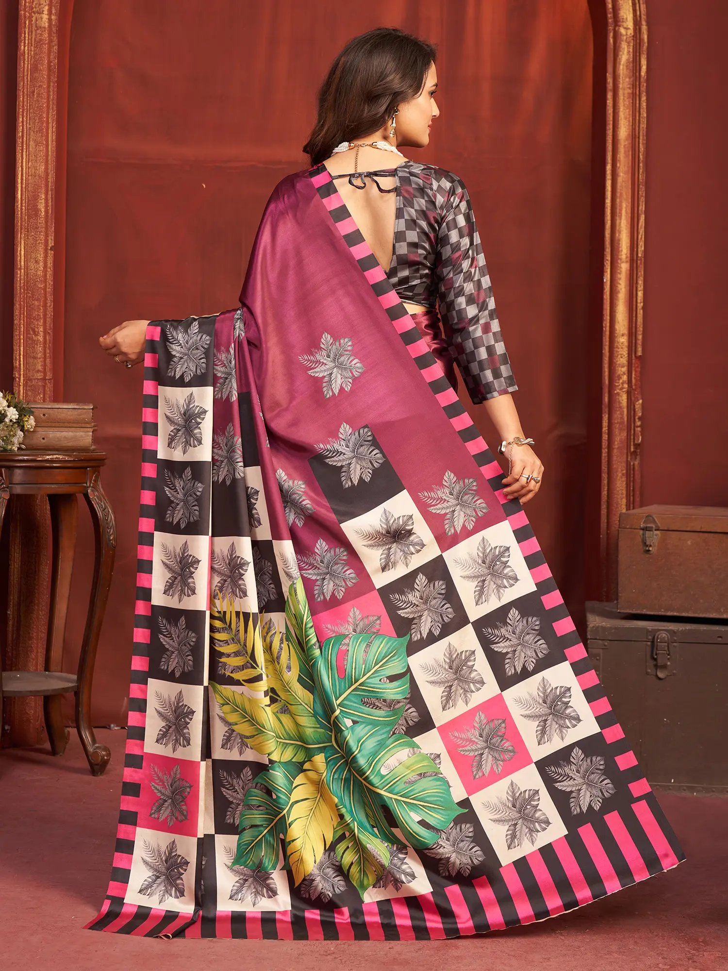 Black Crepe Silk Penetration Print Saree For Women's Elegant Designer Light weight Partywear Statement Sari