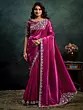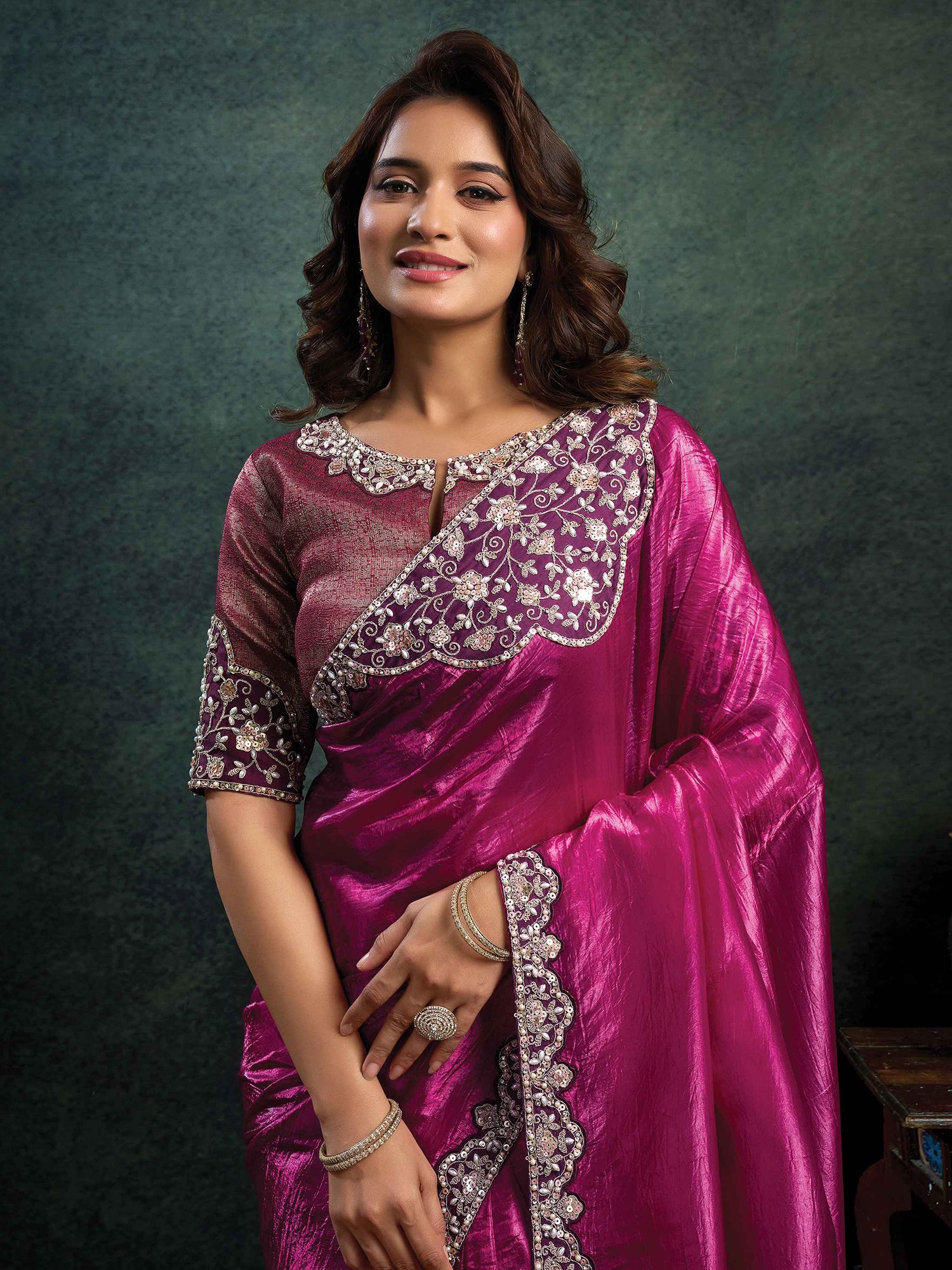 Crush Satin Silk Saree With Dual Sequins Embroidery Pearl Stone And Handwork Designer Party Wear Saree For Women
