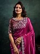Designer Chinon Saree With Digital Print And Mirror Cut Work Elegant Festive Party Wear Traditional Saree For Women
