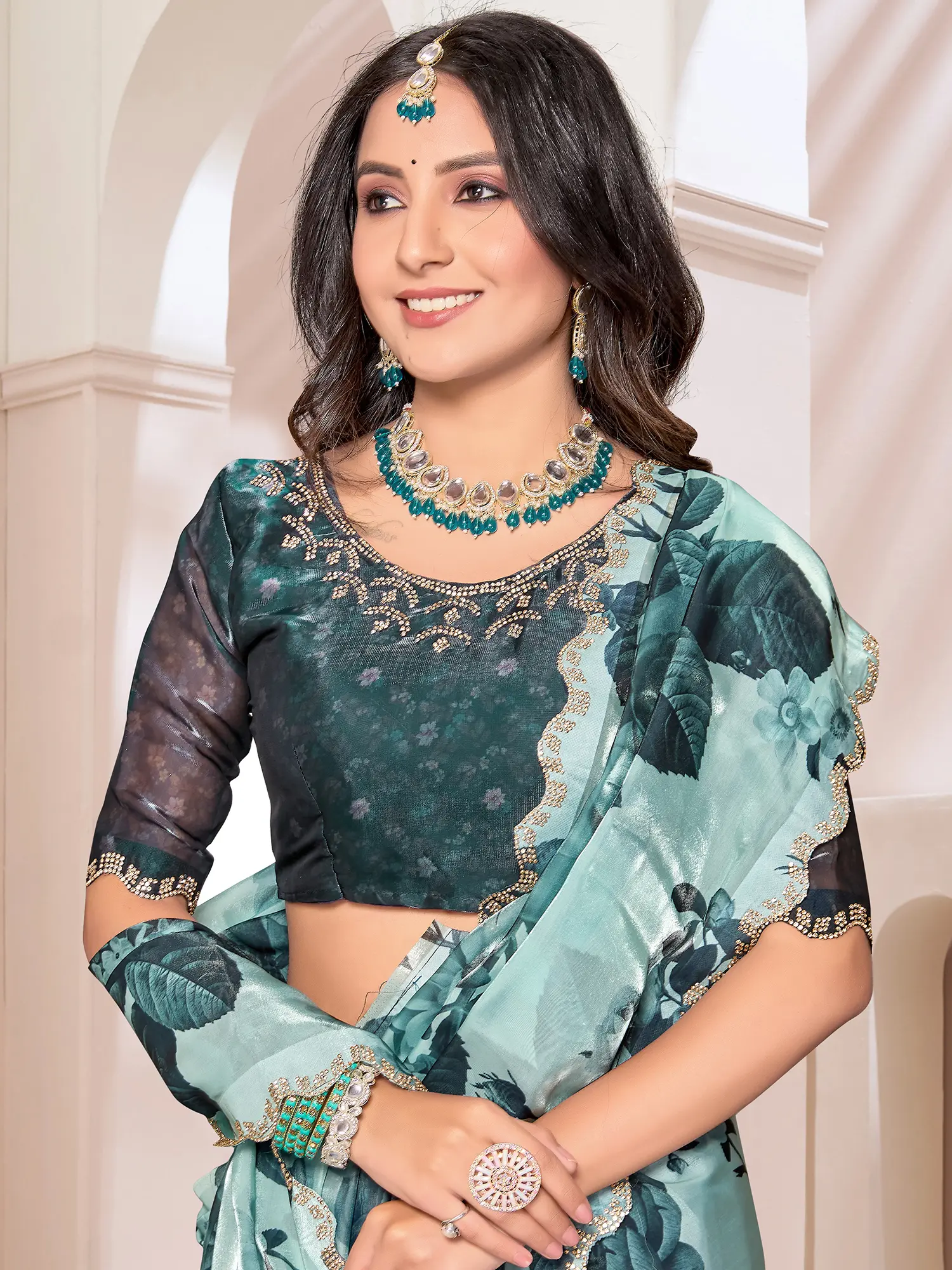 Organza Digital Printed Saree with Zari Brocaded Aanchal