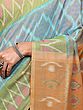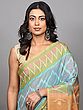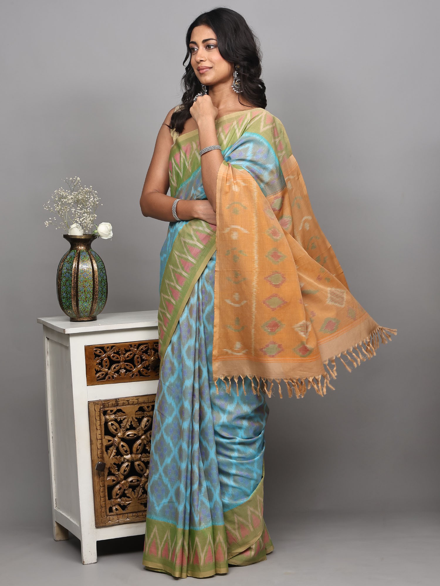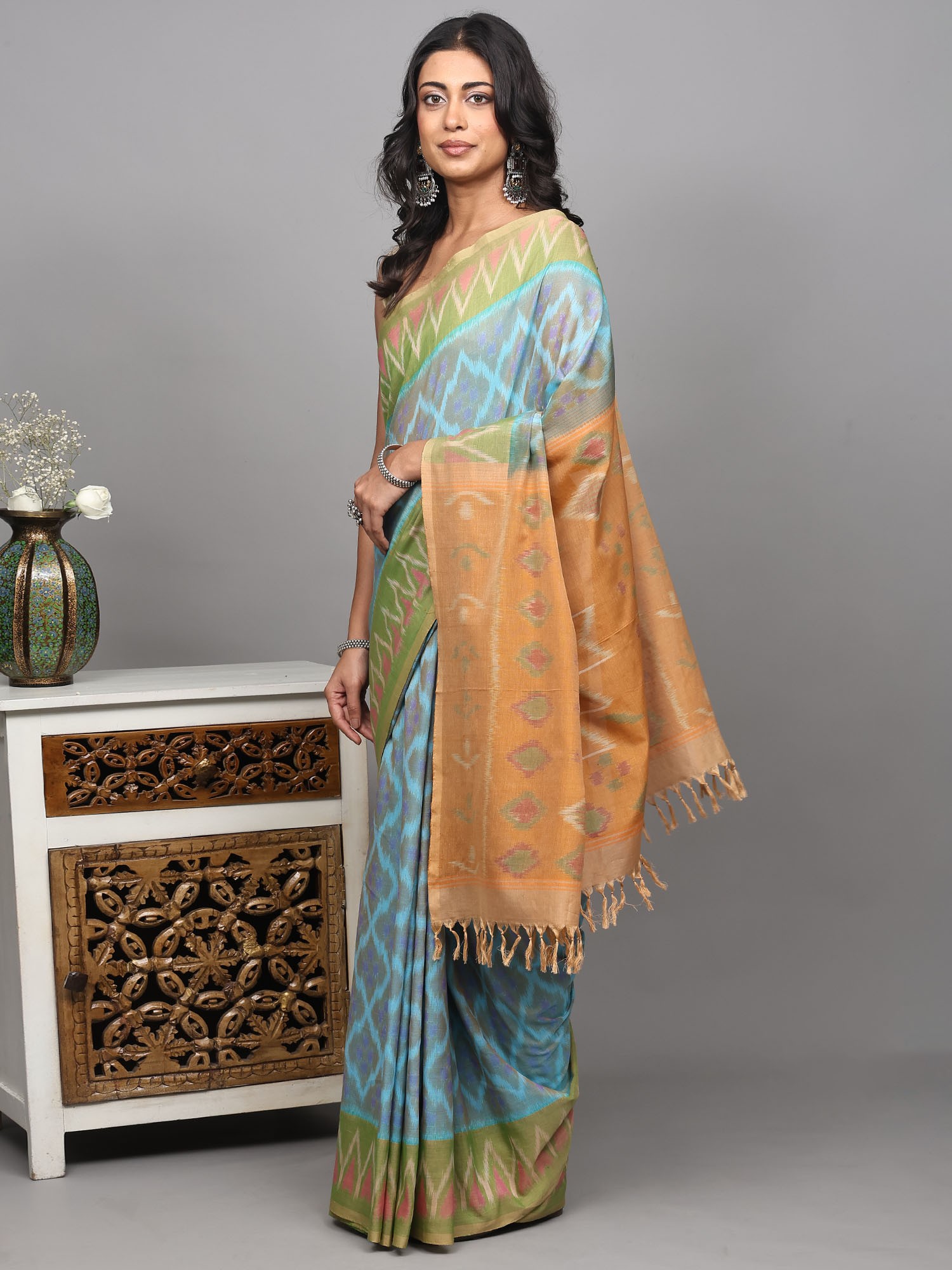Whitecap-Gray Ikat Handloom Pure Cotton Saree with Contrast Blue Temple Border from Sambalpur