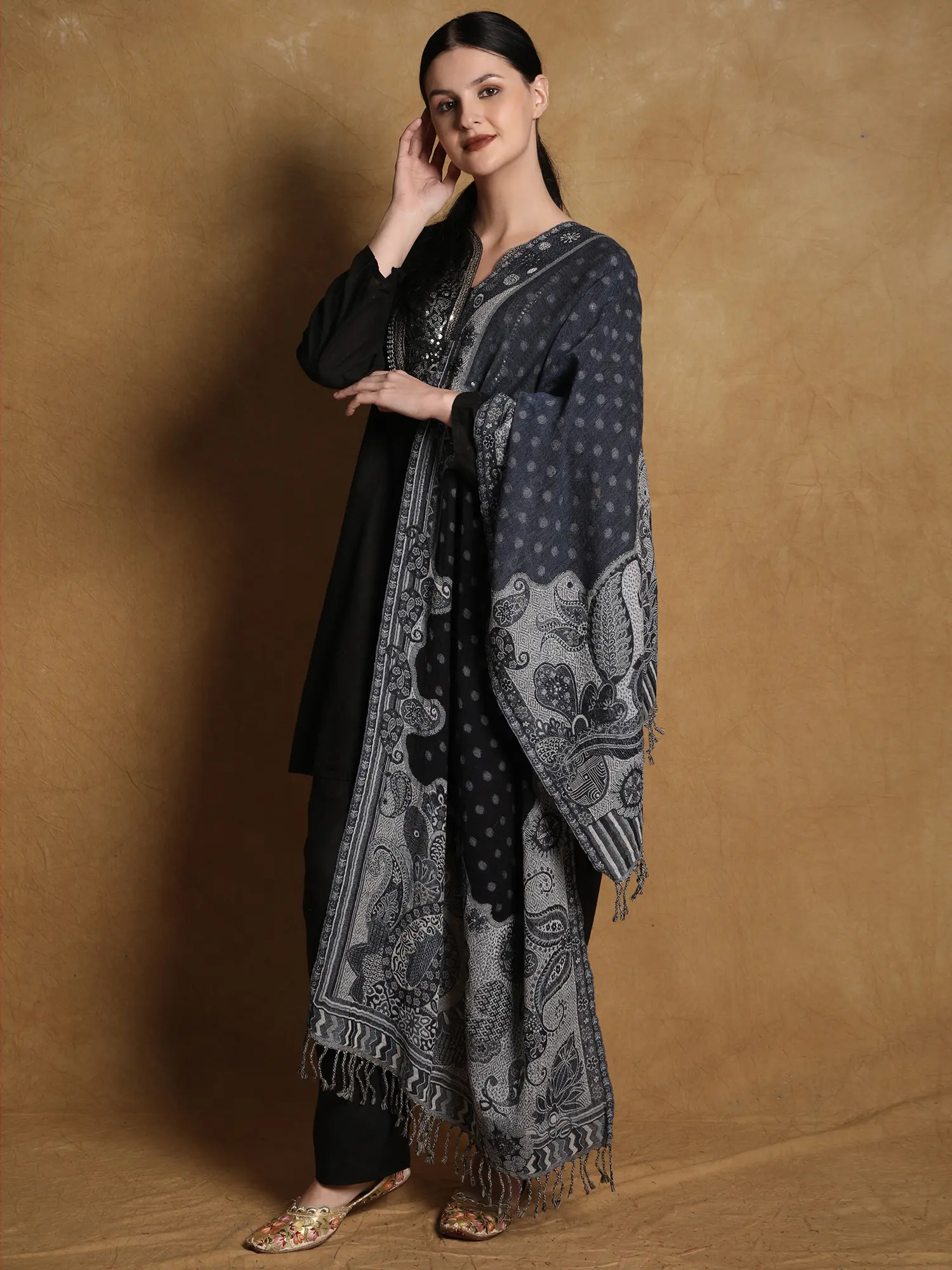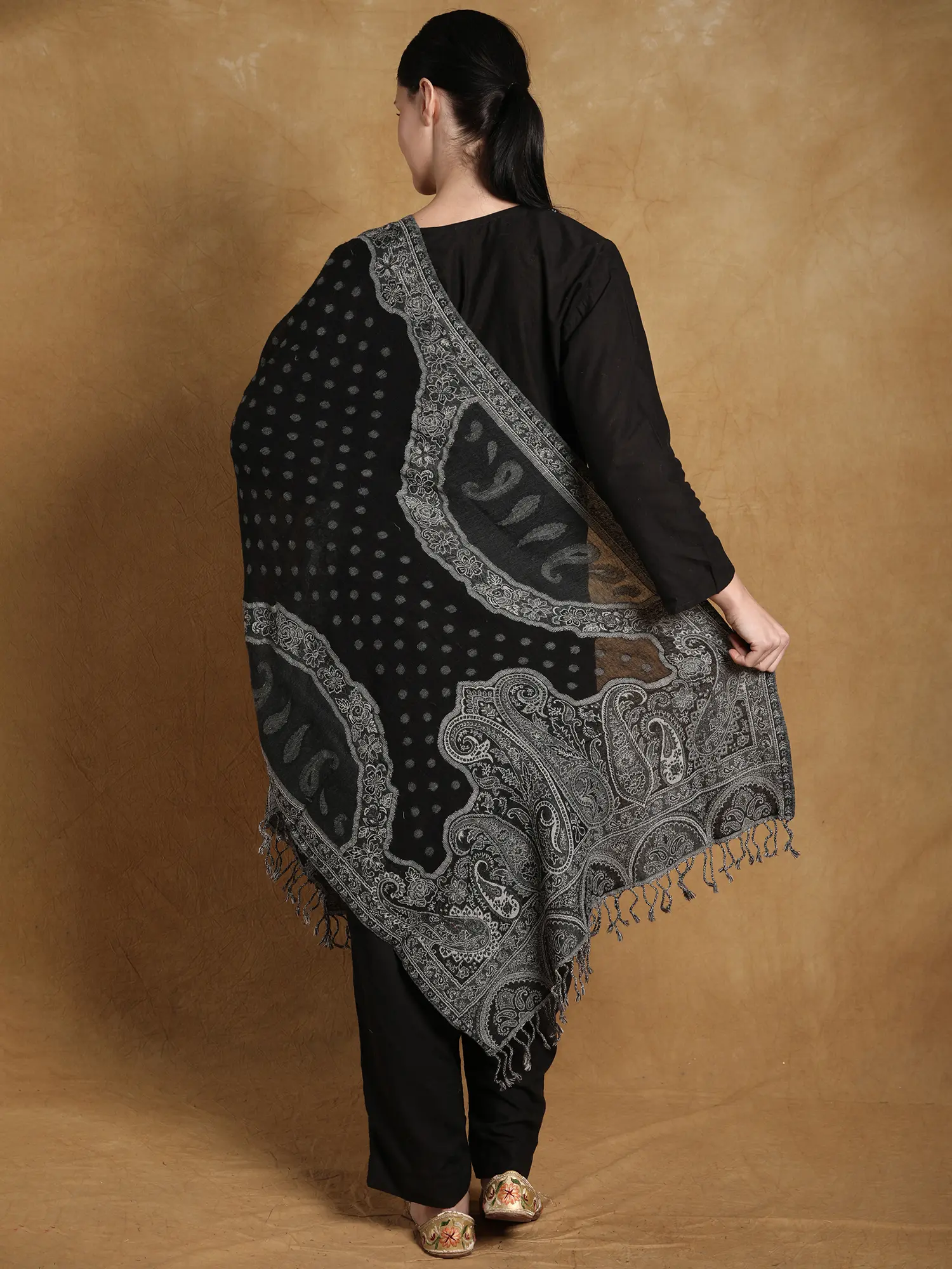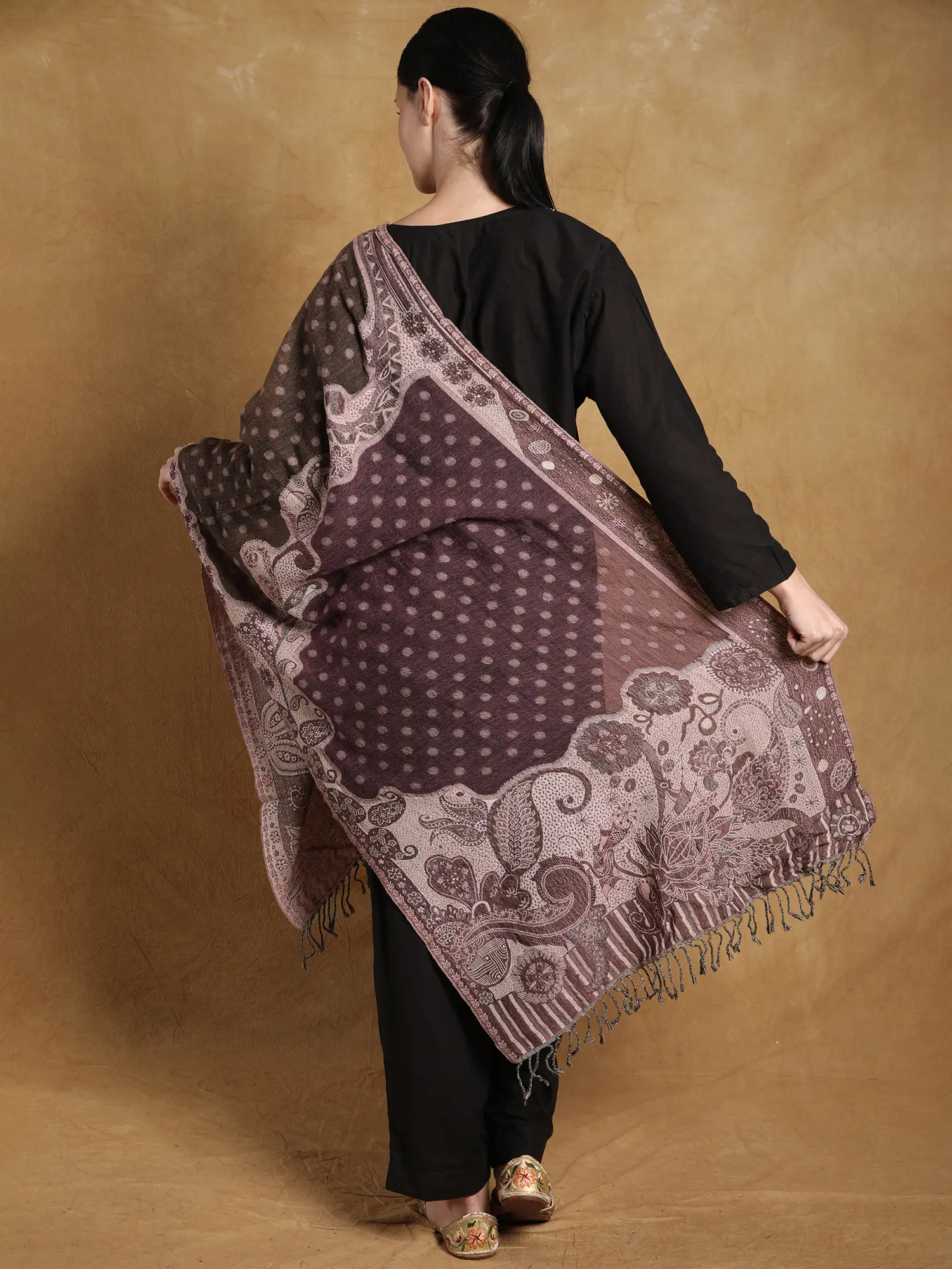 Cutwork jamawar stoles are the most beautiful shawls every lady loves to wear. If you want to get your hands on the right piece, we have got everything covered for you. This exclusive cutwork jamewar stole with woven paisleys and bootis all around it is enough to speak for its ornate artistry. Featuring the chocolate chip colour, this shawl is the way to go. A unique blend of natural beauty and elegance, this piece will elevate your look to a huge extent. Aside from chocolate chips, we have a vast collection of different colours available in it. You can shop for Cloudburst, Gray, Iron, French Blue, Jet Black and Swiss Green coloured stole available in the same design. No matter what your choice is, we have everything covered for you under one roof. Feel free to mix and match these shawls with your attires and get that perfect diva look for your day. Shop today!
