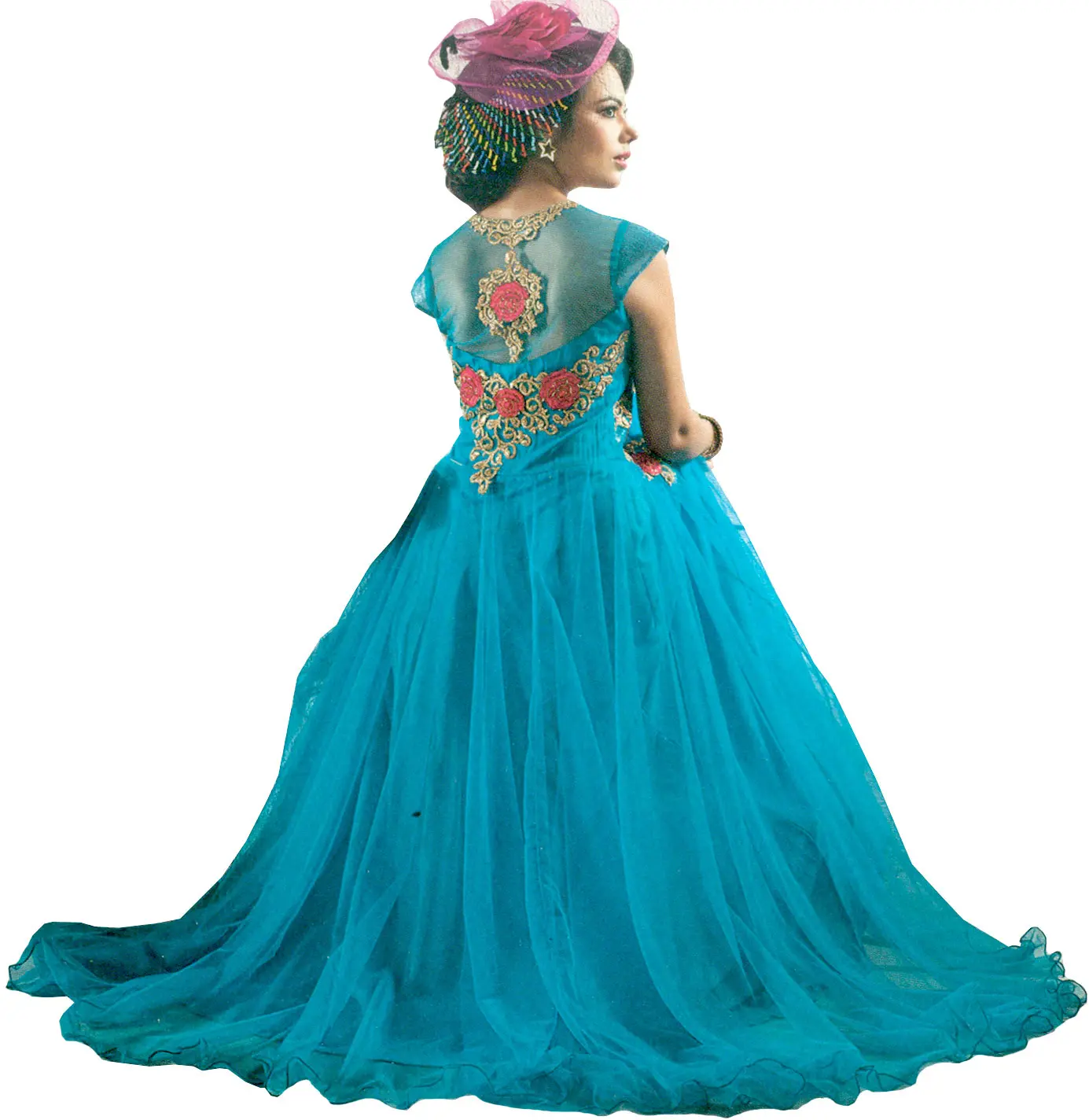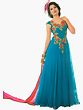 Bright-Pink and Blue Wedding Anarkali Suit with Embroidered Bolero Jacket and Wide Patch Border