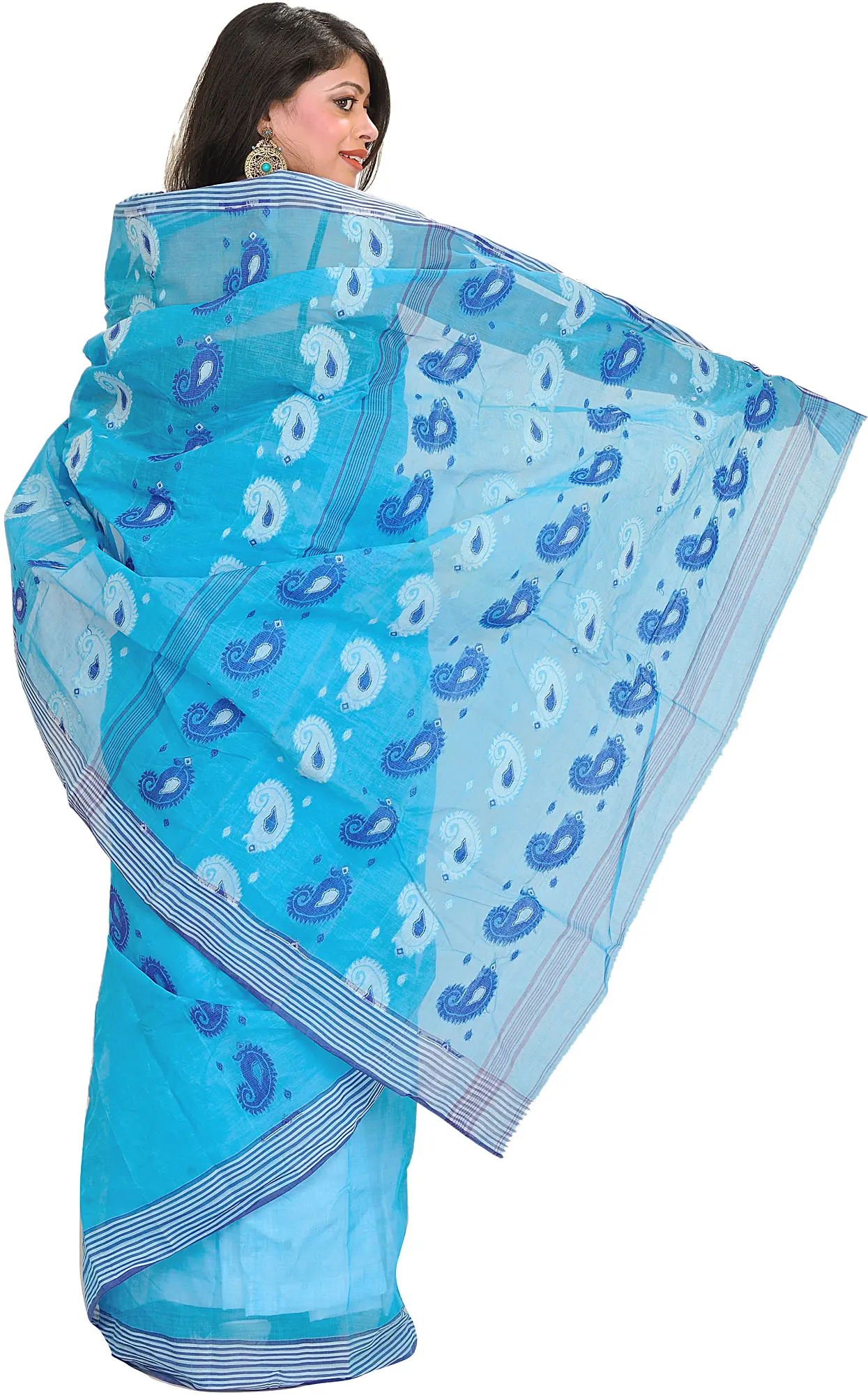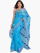 Ivory Sari from Bengal with Printed Bootis and Golden Border