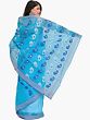 Caviar-Black Jamdani Saree from Bengal with Woven Bootis and Striped Border