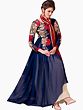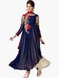 Dark-Blue and Ivory Designer Double-Layered Anarkali Suit with Zari Floral-Embroidery and Crystals