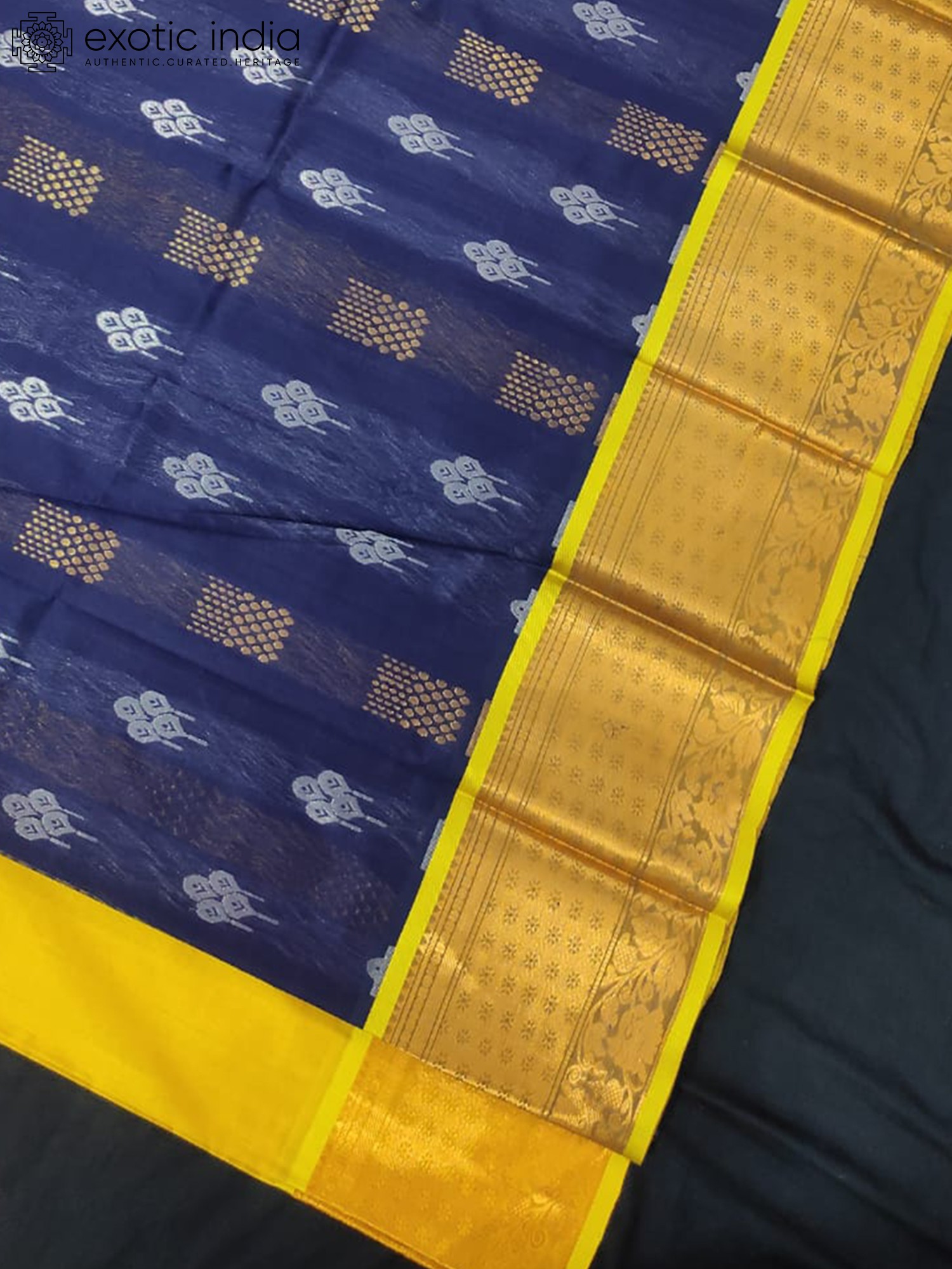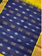 Blue and Golden Floral Handloom Fabric from Banaras with Zari Weave