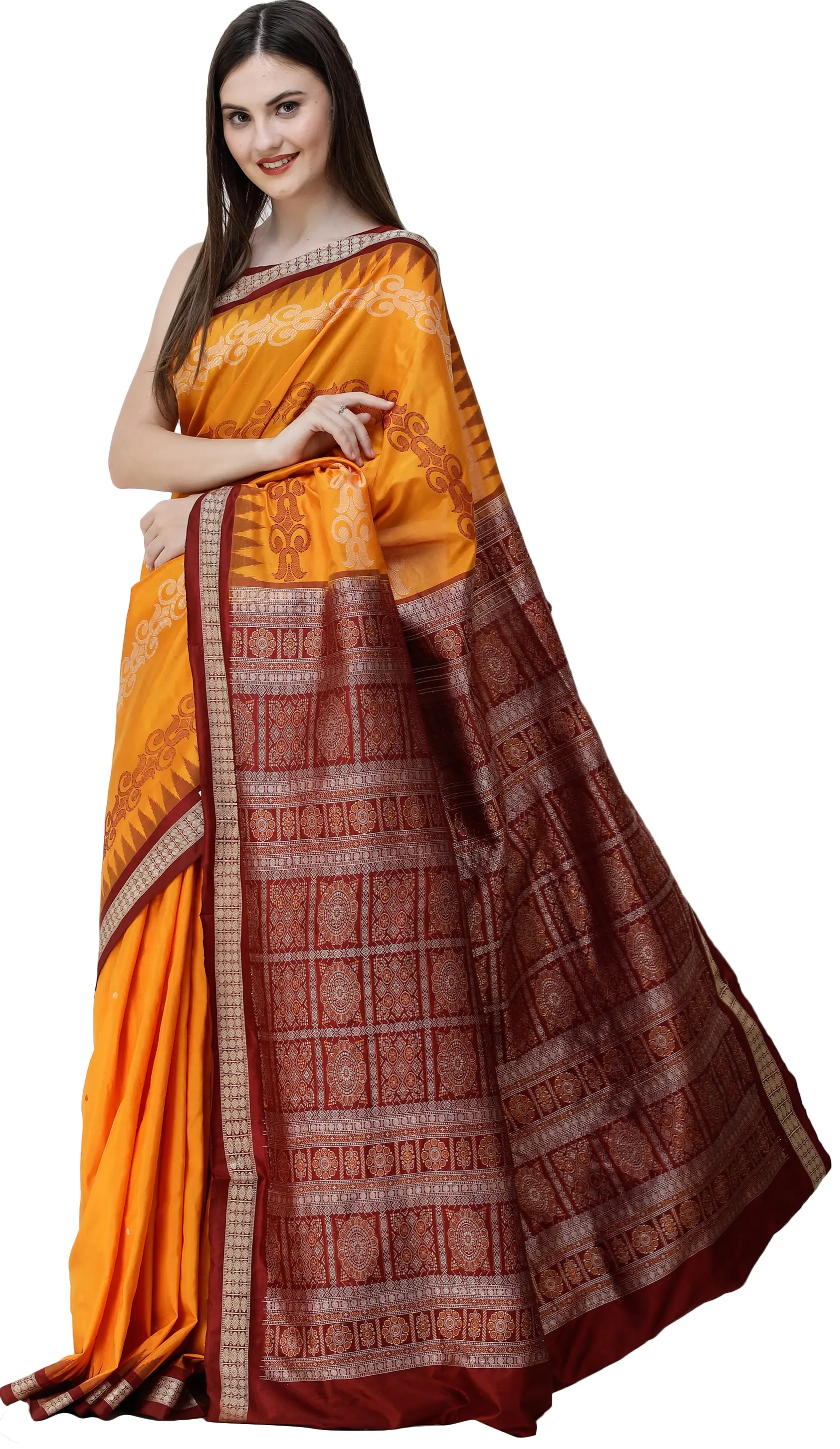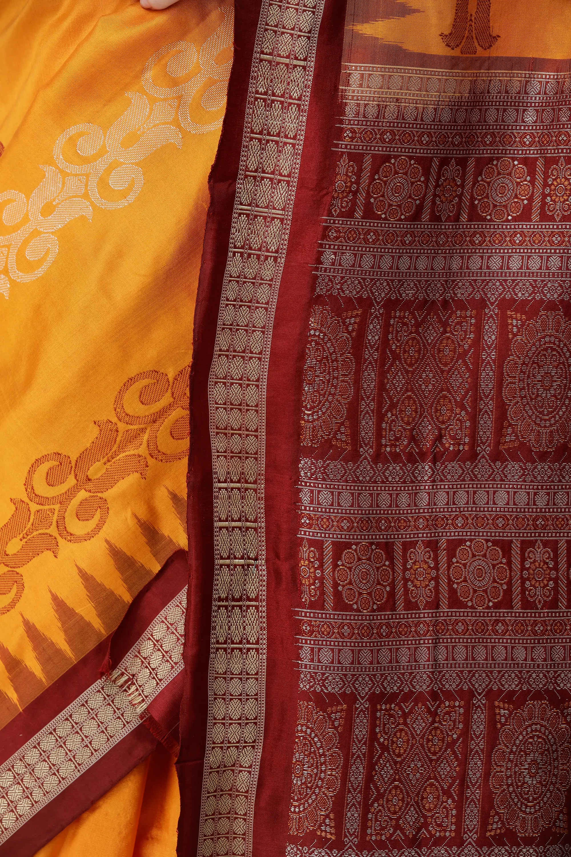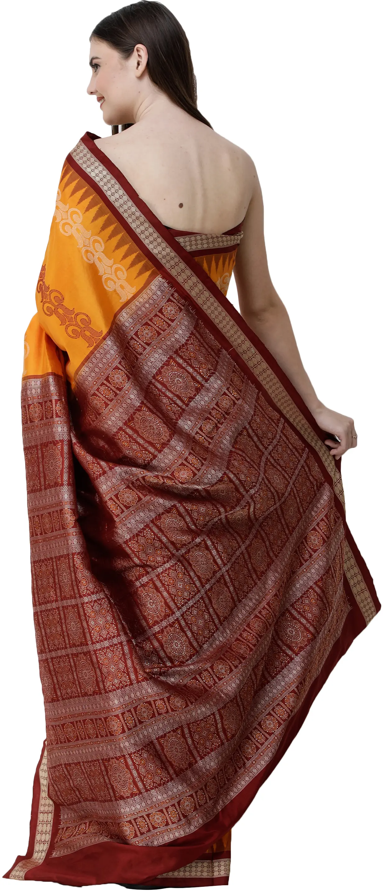 Apricot Chanderi Saree from Madhya Pradesh with Zari-Woven Border and Floral Bootis