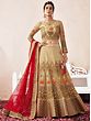 Bottle-Green Net Beads and Golden Thread Embroidery Lehenga Choli with Cutwork Dupatta