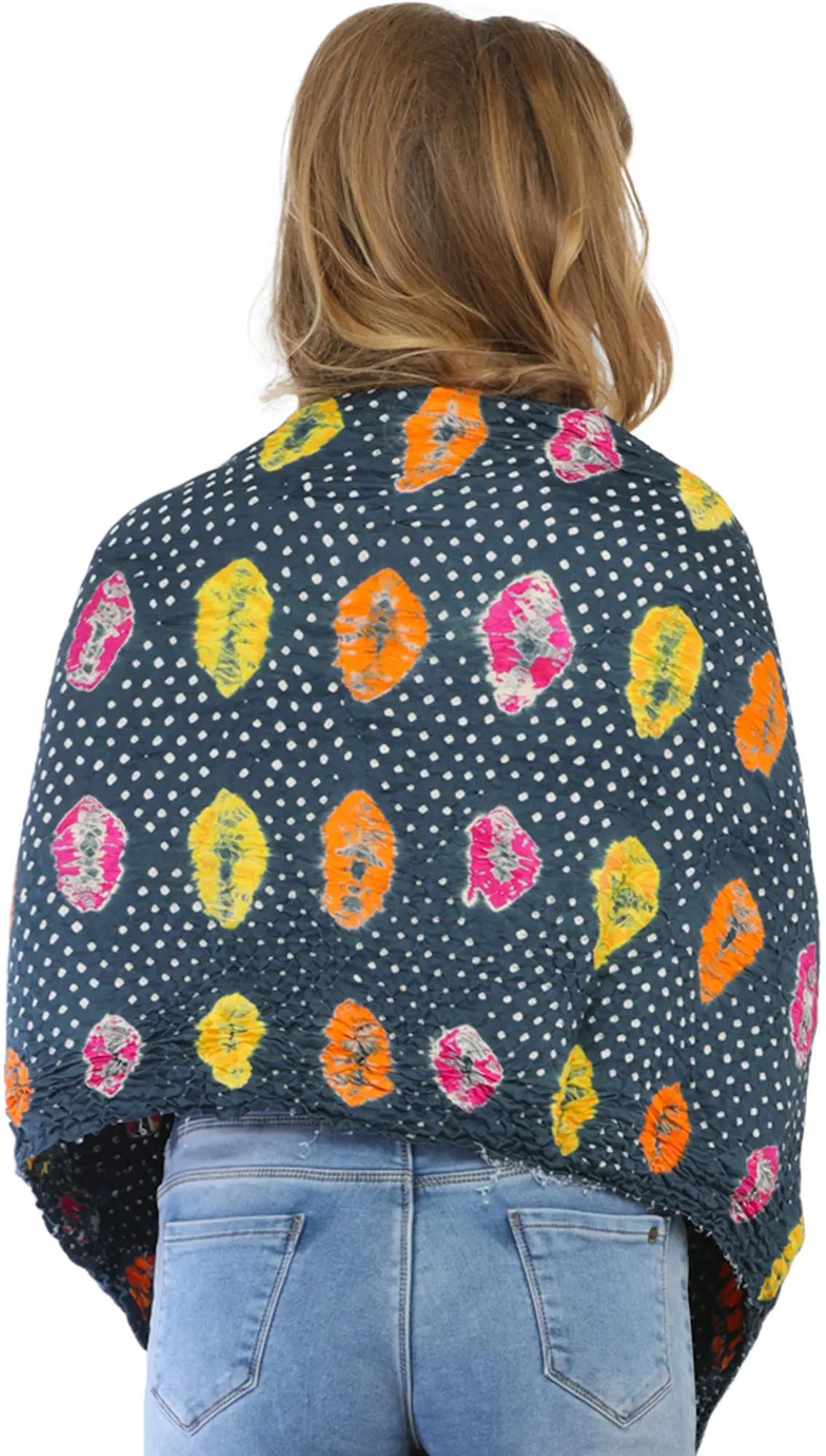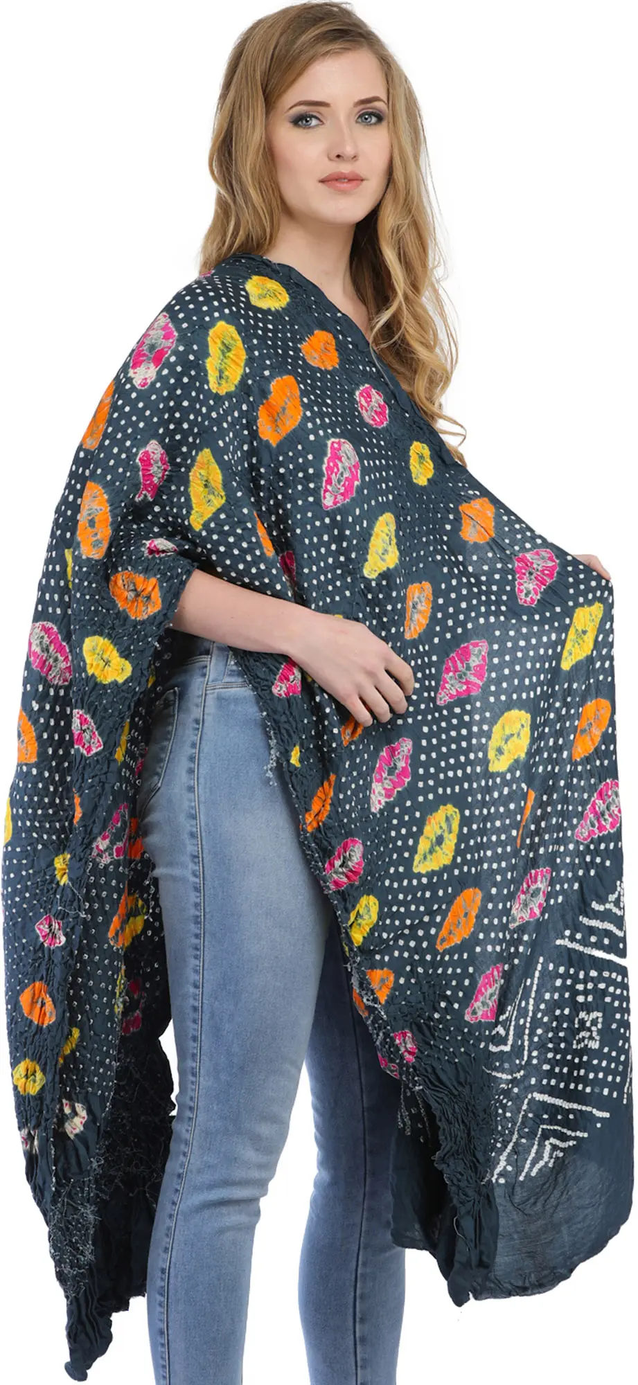 Multicolored Bandhani Tie-Dye Crinkled Dupatta with Gota Border