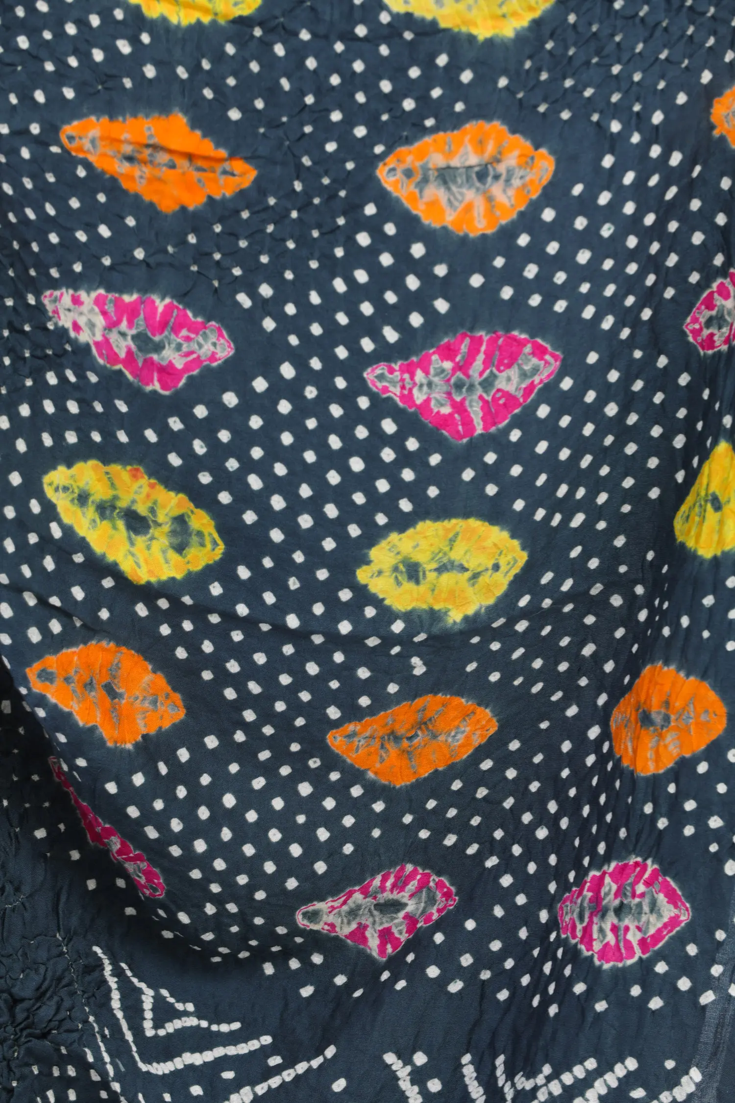 Multicolor Georgette Bandhani Dupatta with Bead-Mirror work and Gotta Patti Border