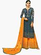 Dark-Denim Flared-Palazzo Salwar kameez Suit with Printed Florals and Crystals