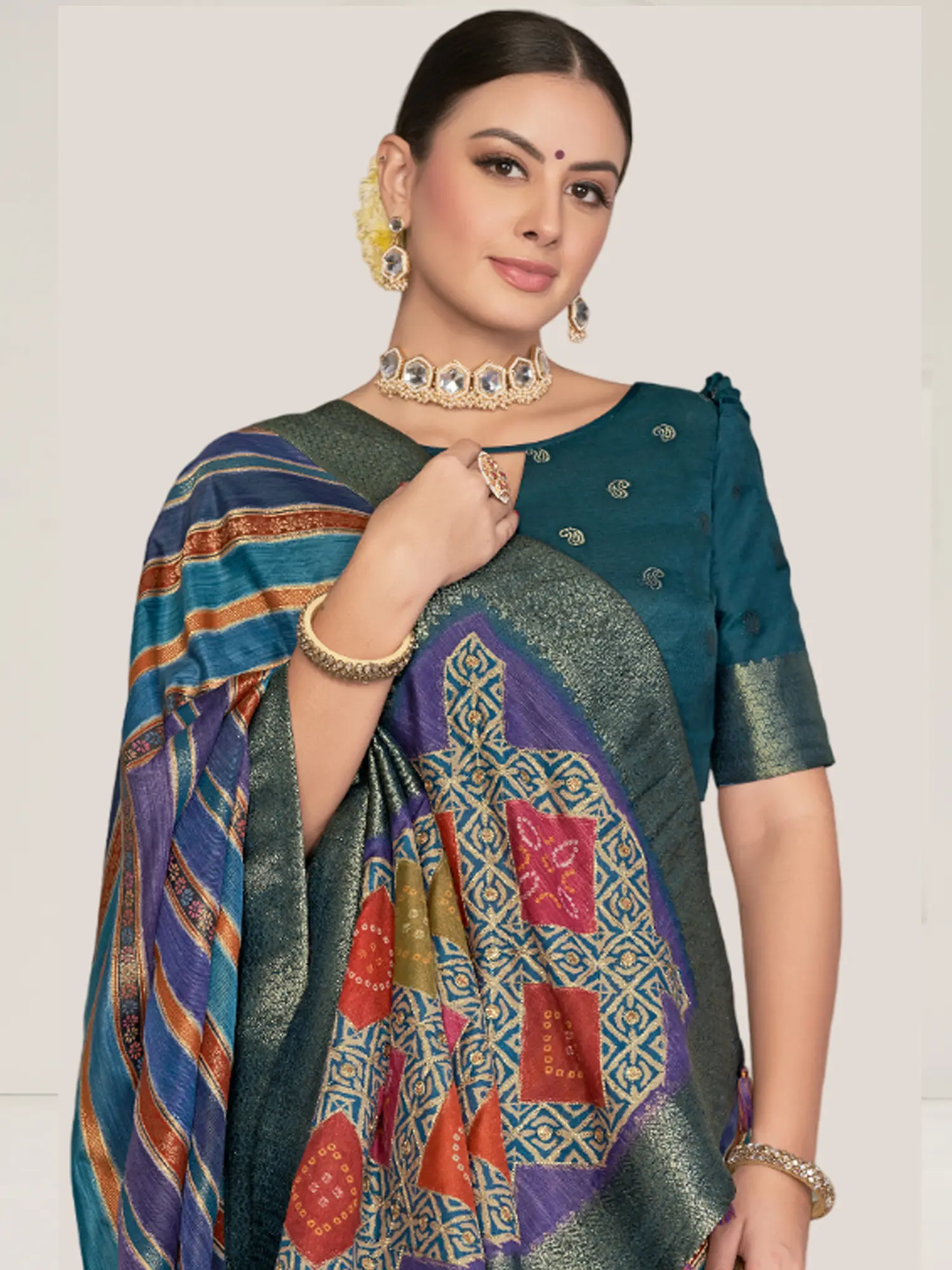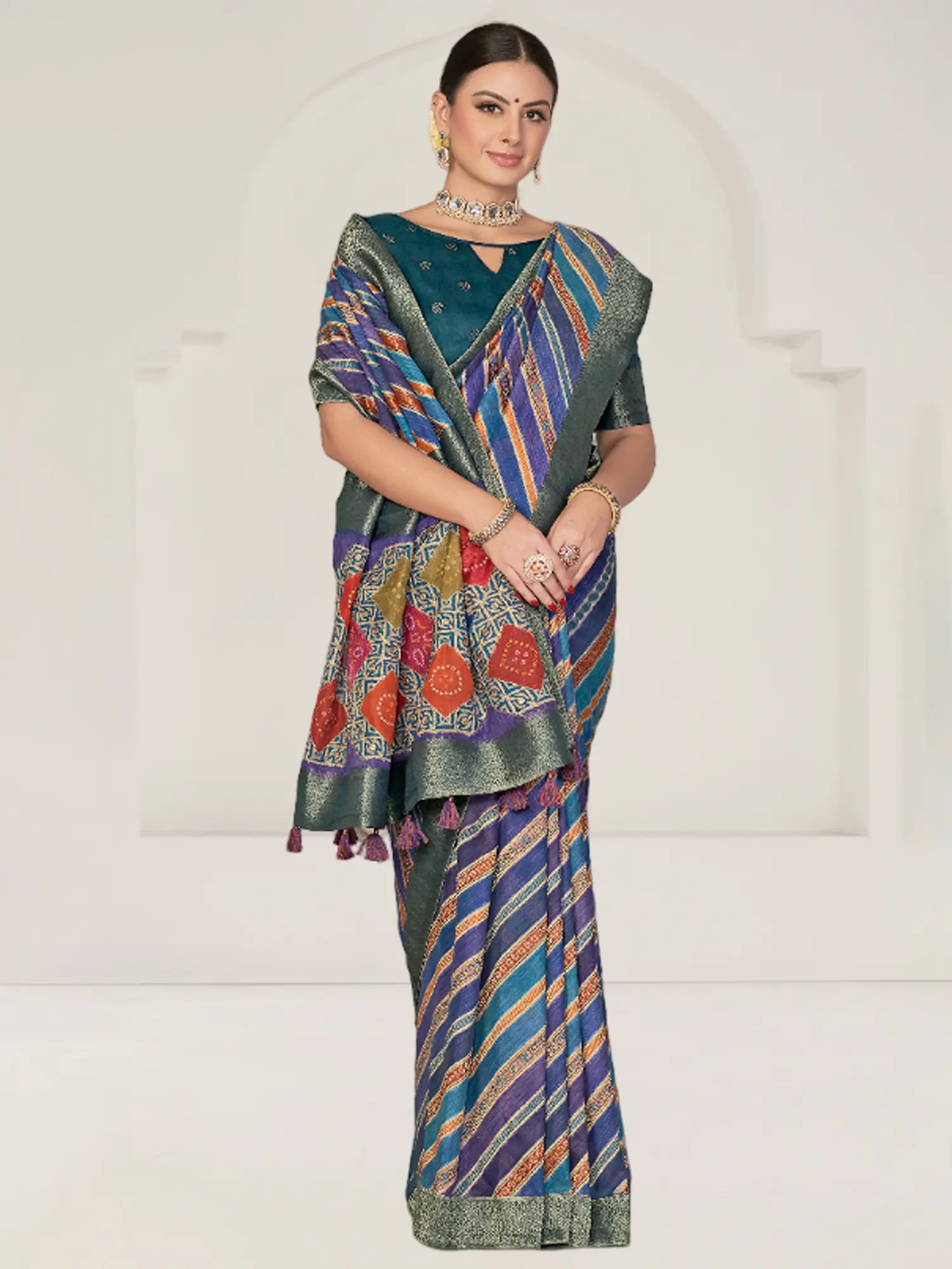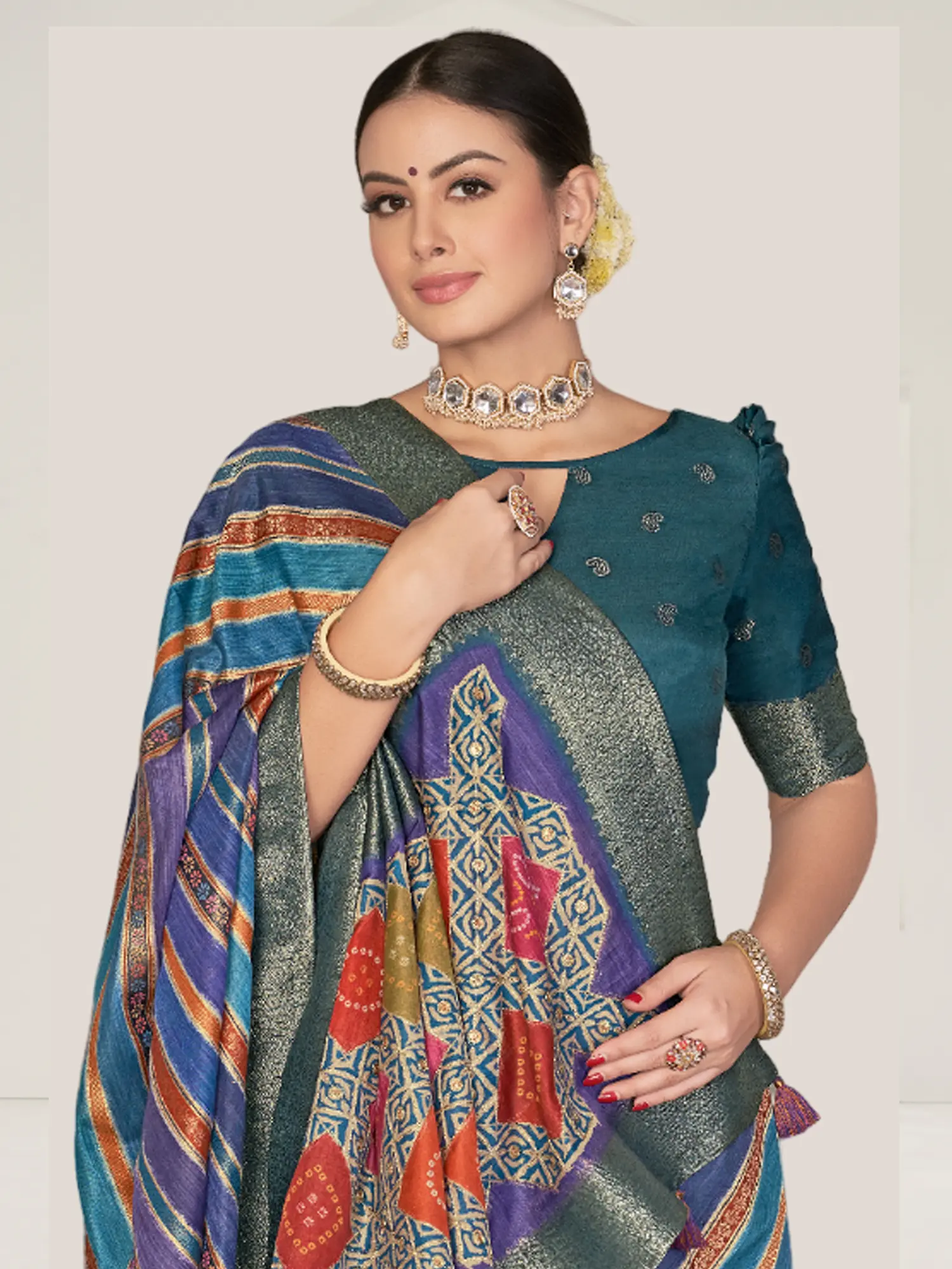 Printed Dupatta from Kutch with Hand-Embroidered Florals and Mirrors