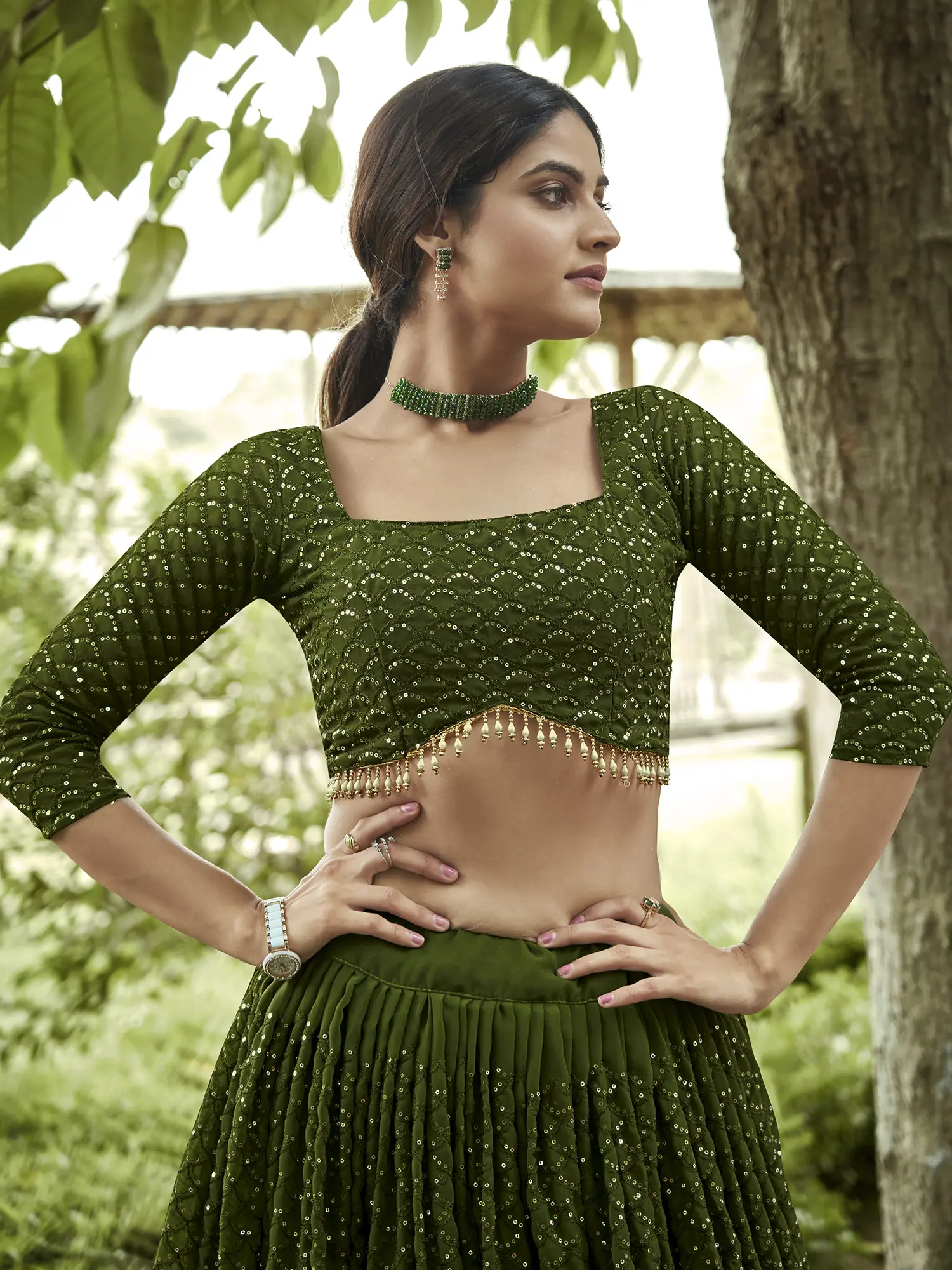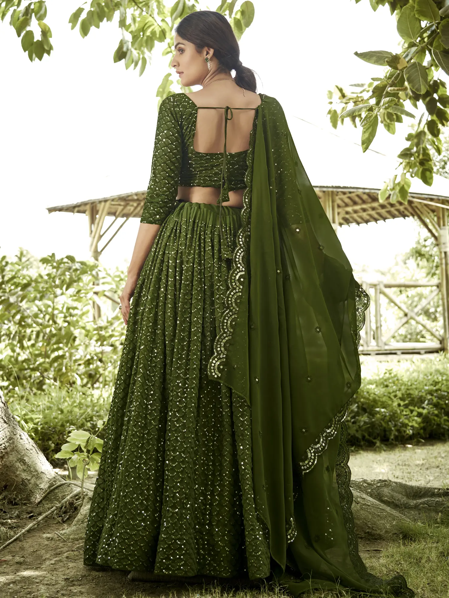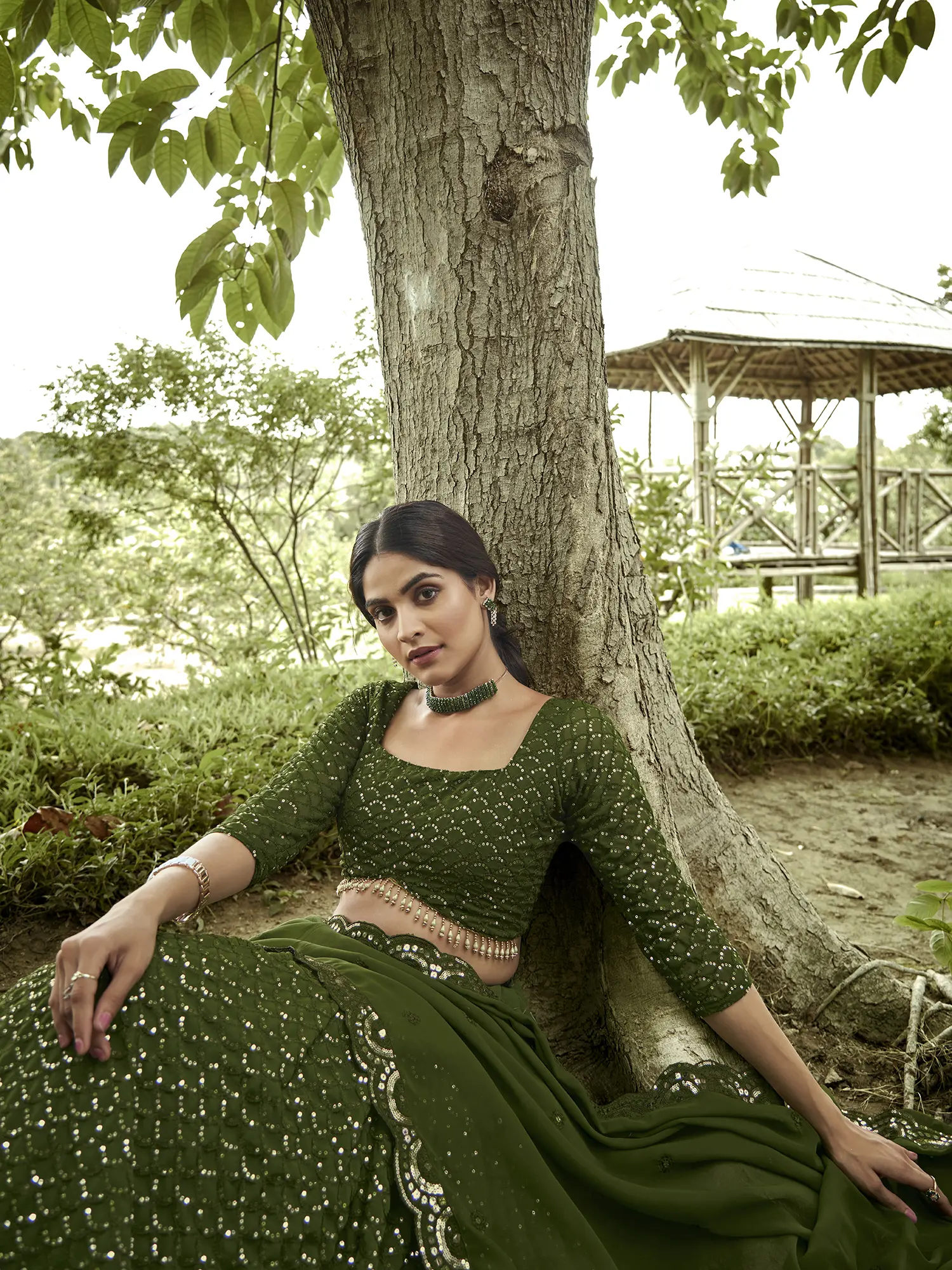 Pure Organza Zarkan And Sequins Work Elegant Lehenga Choli With Matching Dupatta