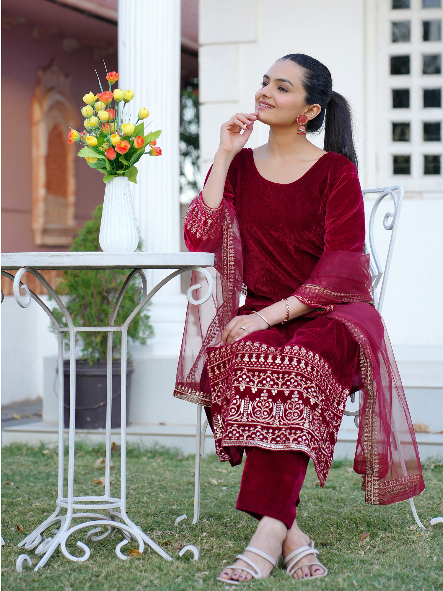 Velvet Stole from Amritsar with Hotfix Stone Work and Latkan Border